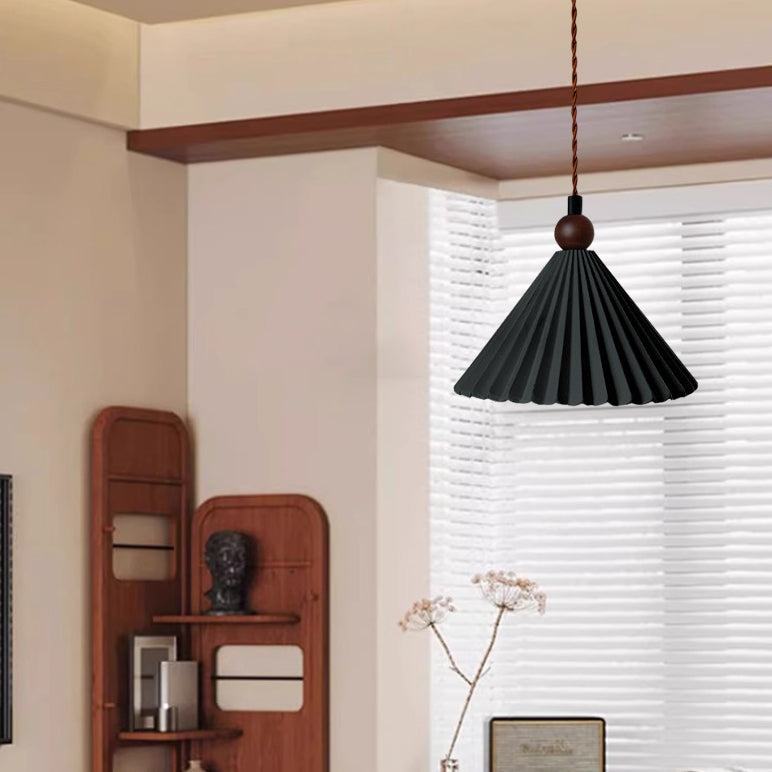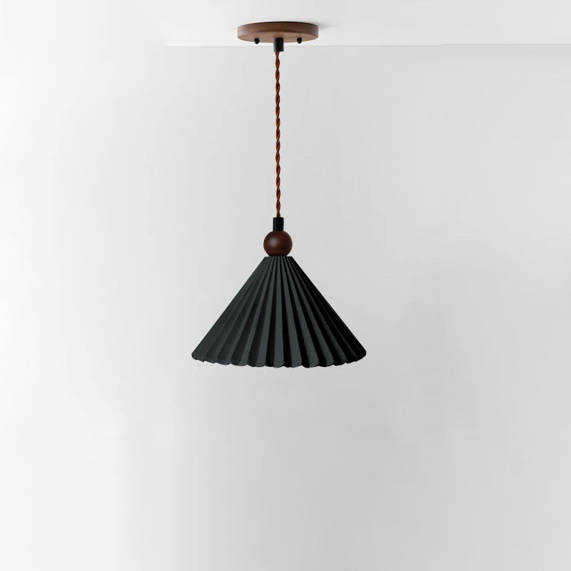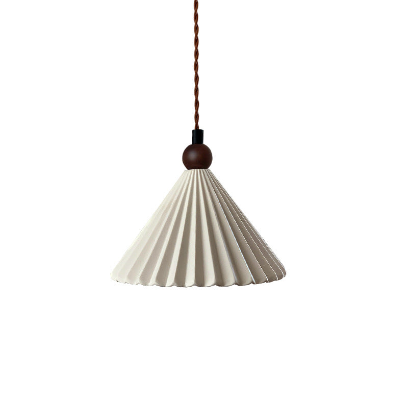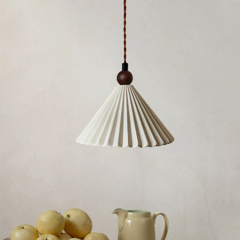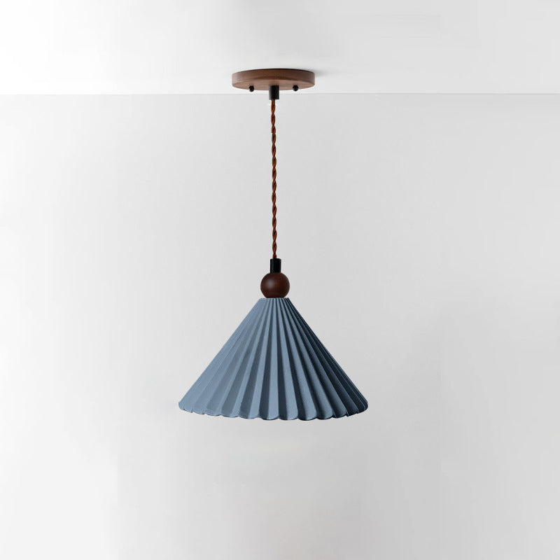 Contemporary Retro Solid Wood Pleated Ceramic Conical Shade 1-Light Pendant Light For Bedroom
