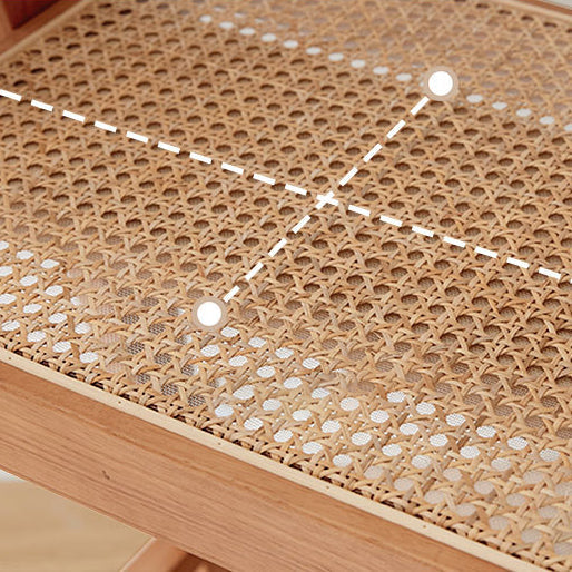 Contemporary Retro Square Wood Rattan Bar Stool Armrest Backrest For Dining Room