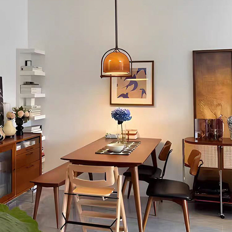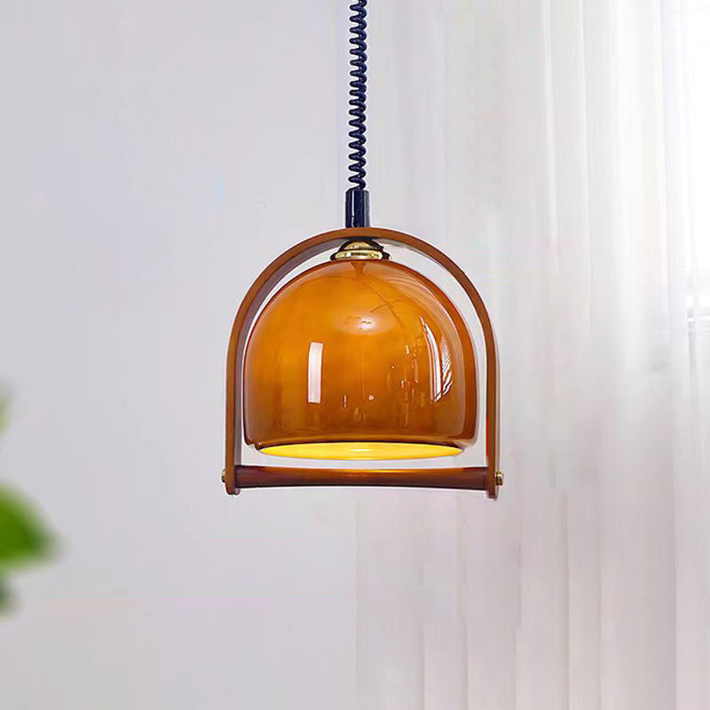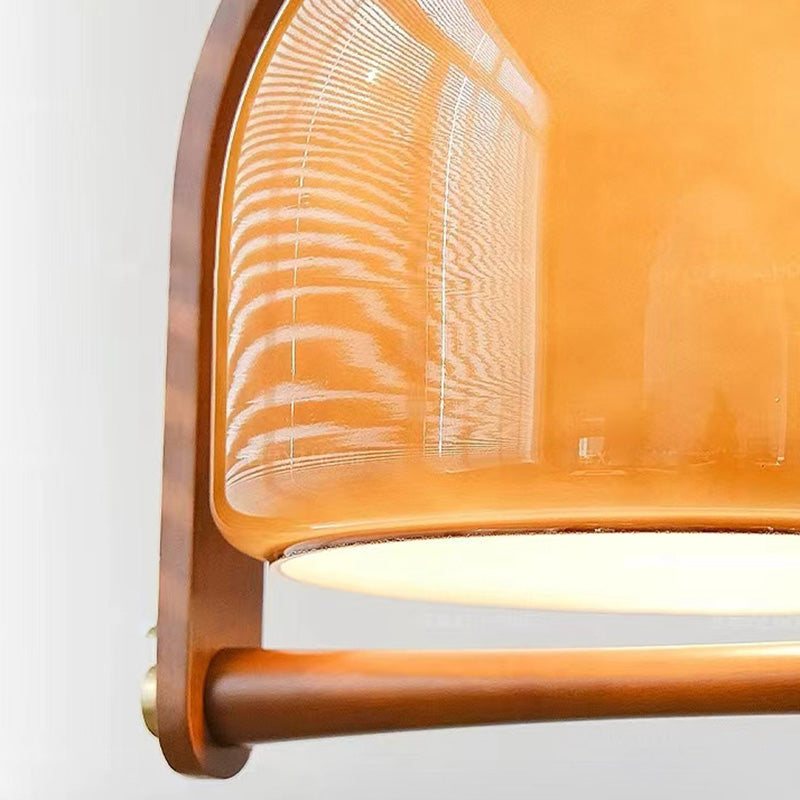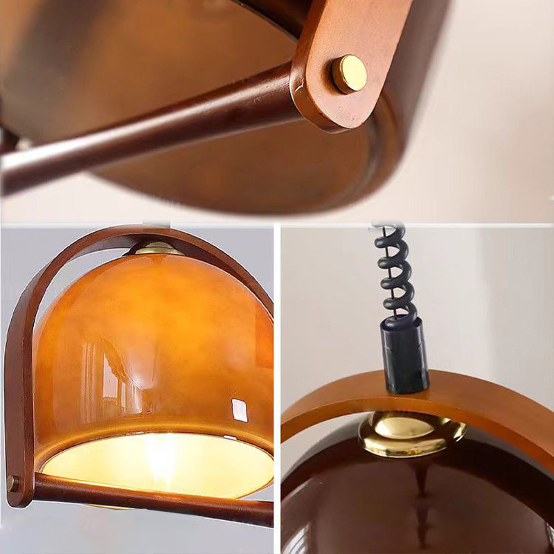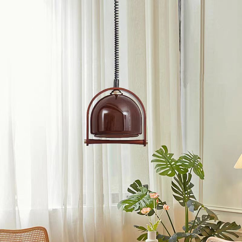 Contemporary Retro Stretchable Round Arch Solid Wood Frame Glass Shade 1-Light Pendant Light For Living Room