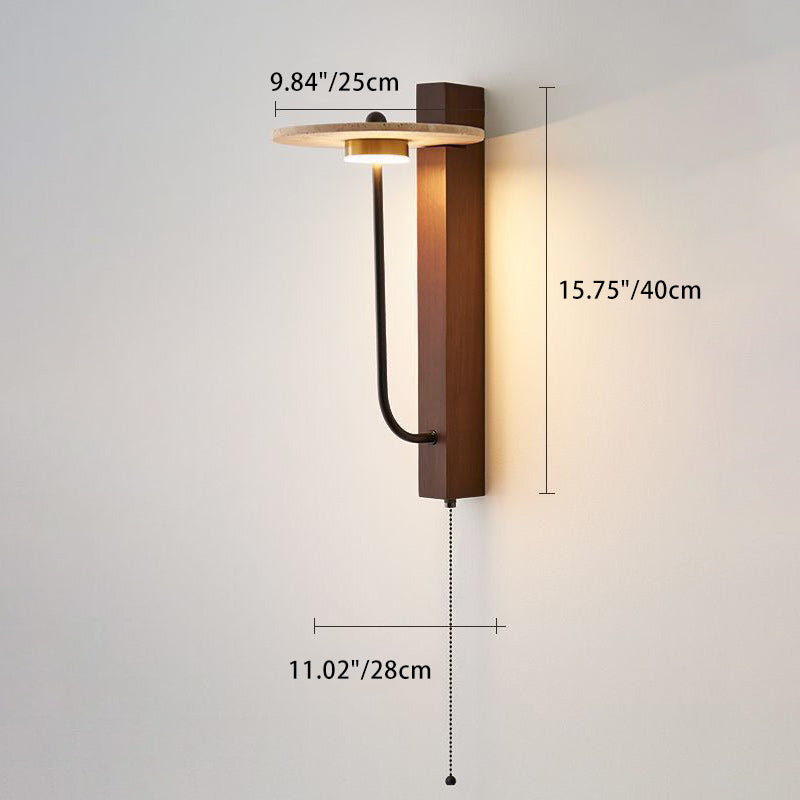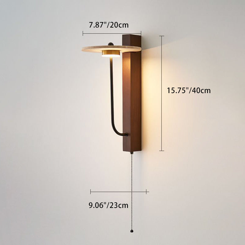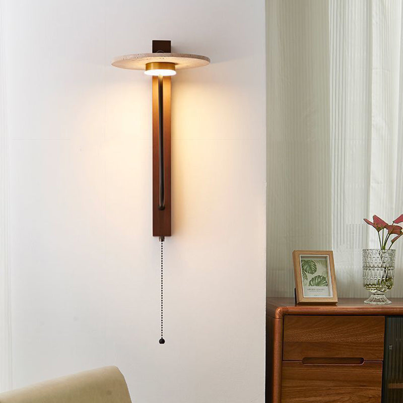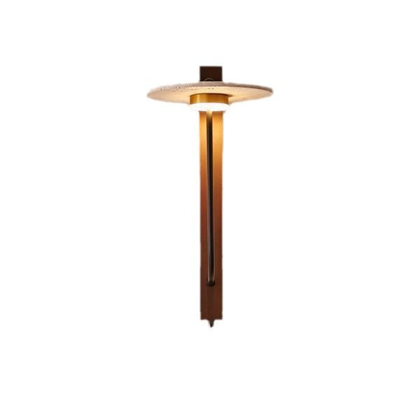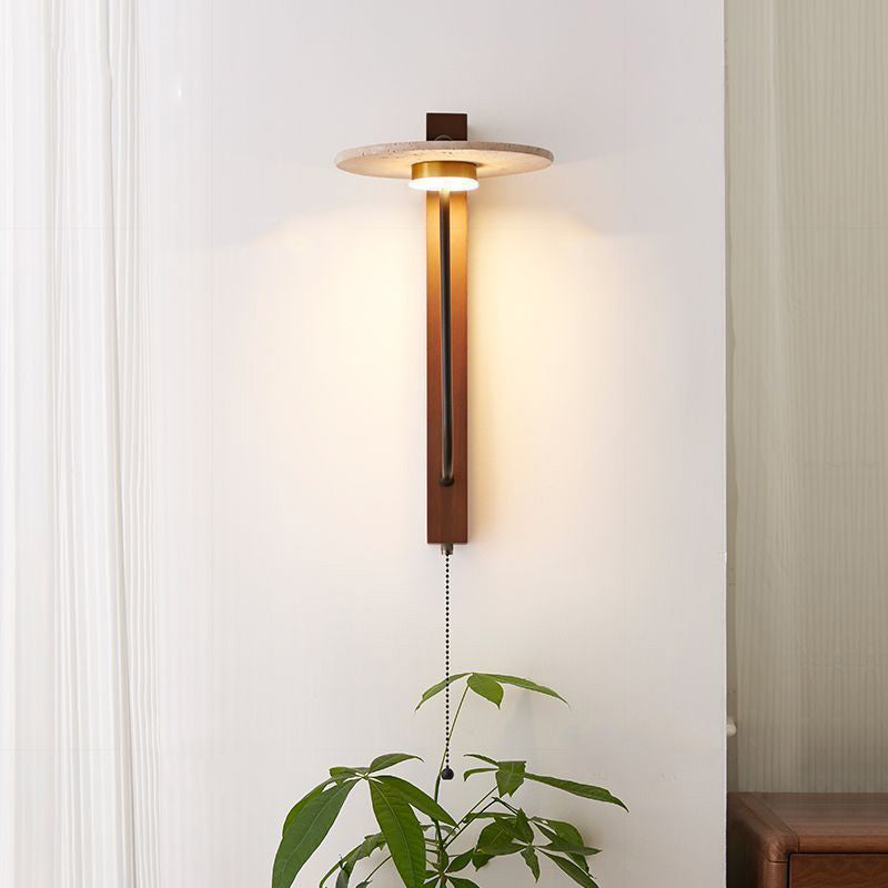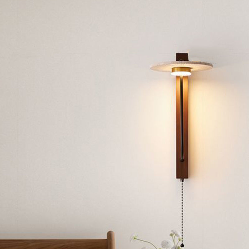 Contemporary Retro Umbrella Yellow Travertine Solid Wood LED Wall Sconce Lamp For Living Room