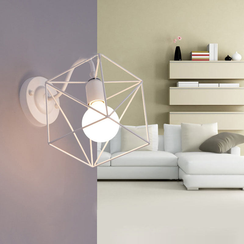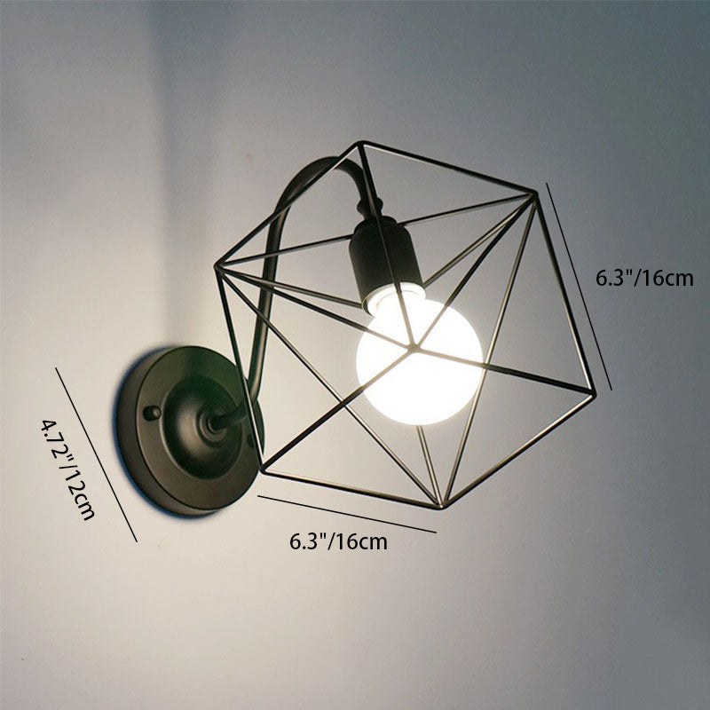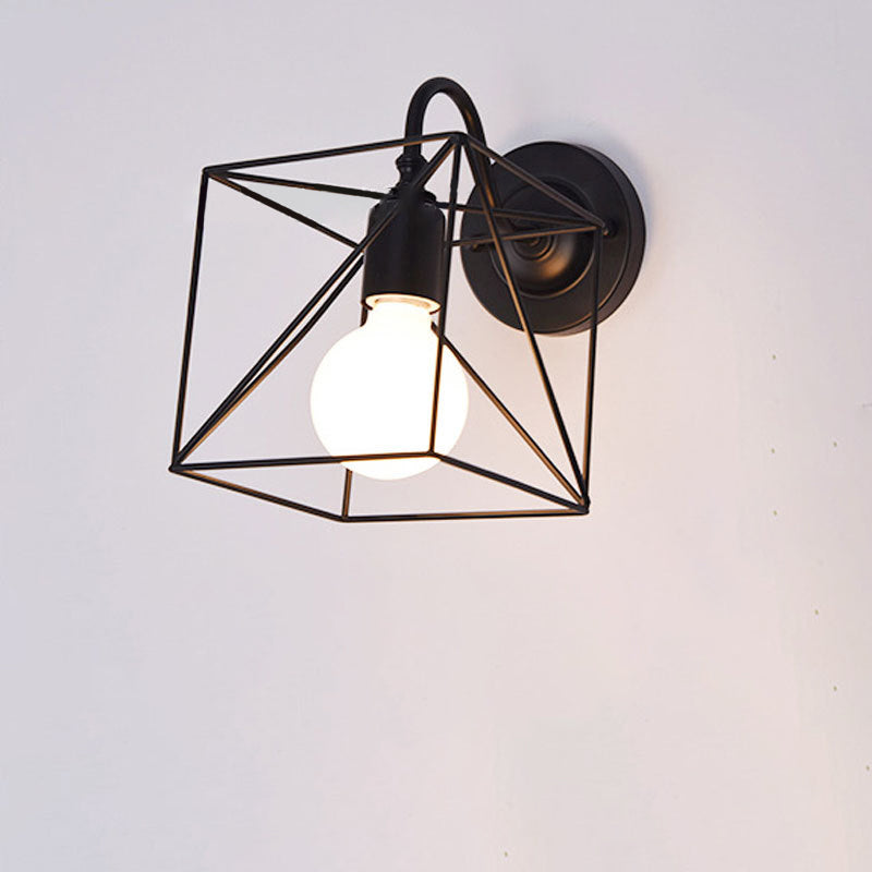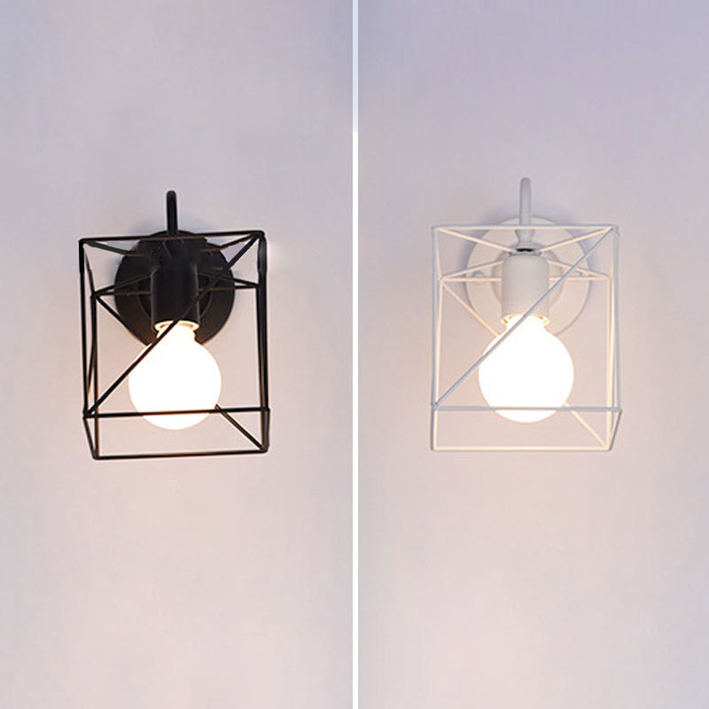 Contemporary Rustic Iron Square Frame 1-Light Wall Sconce Lamp For Living Room