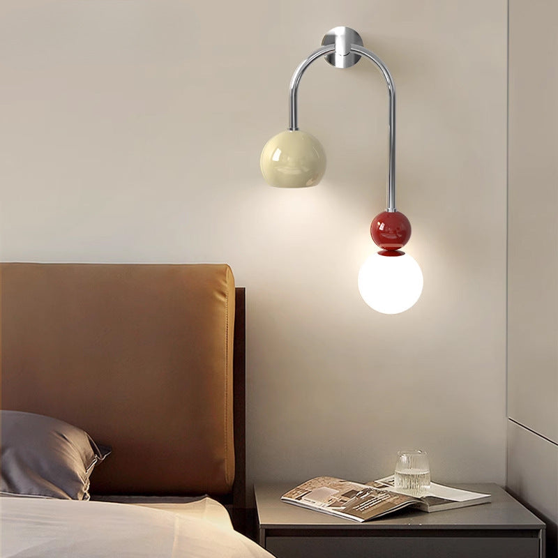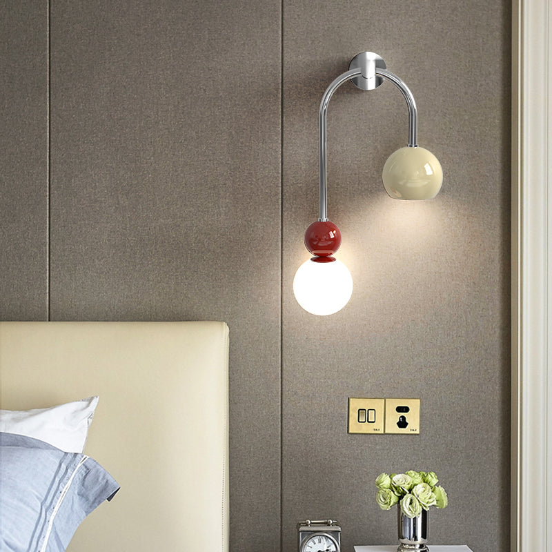 Contemporary Scandinavian Arc Iron Acrylic Ball Shade 1-Light Wall Sconce Lamp For Bedroom