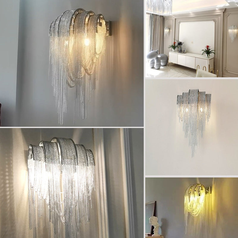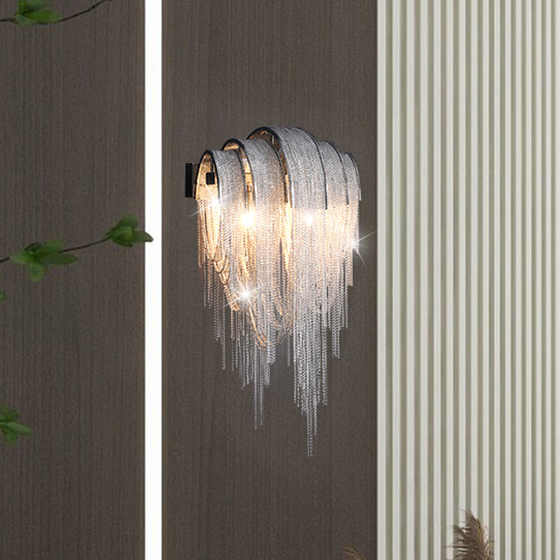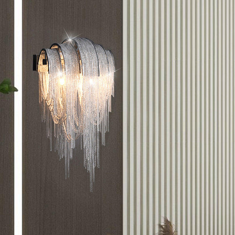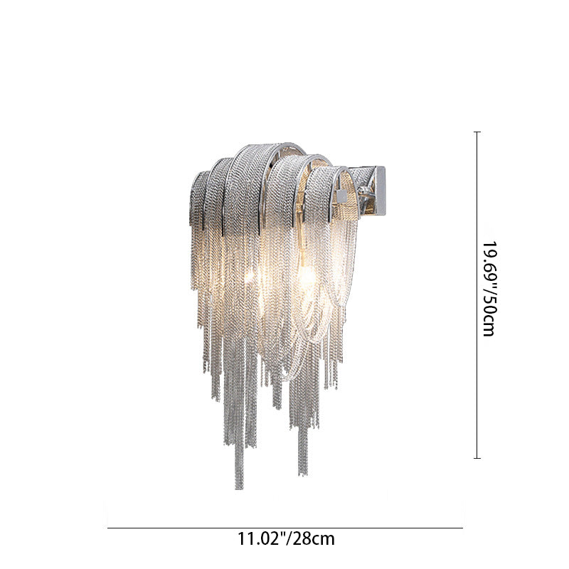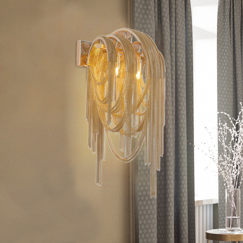 Contemporary Scandinavian Bar Ring Tassel Rectangular Base Iron Aluminum 2-Light Wall Sconce Lamp For Living Room
