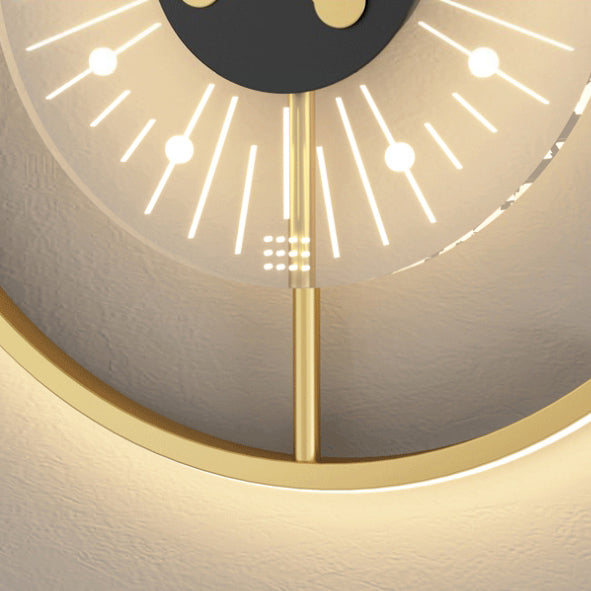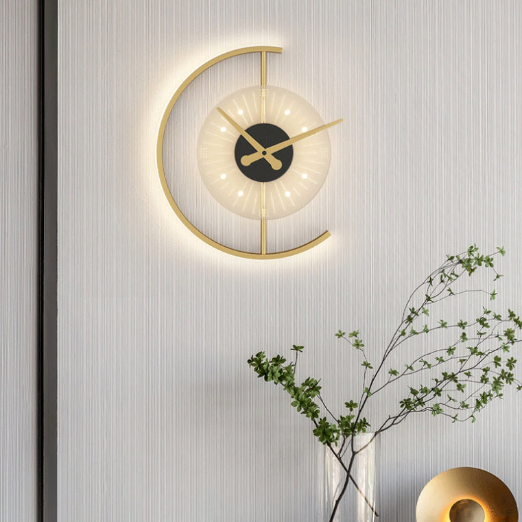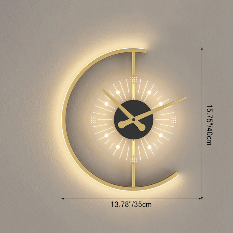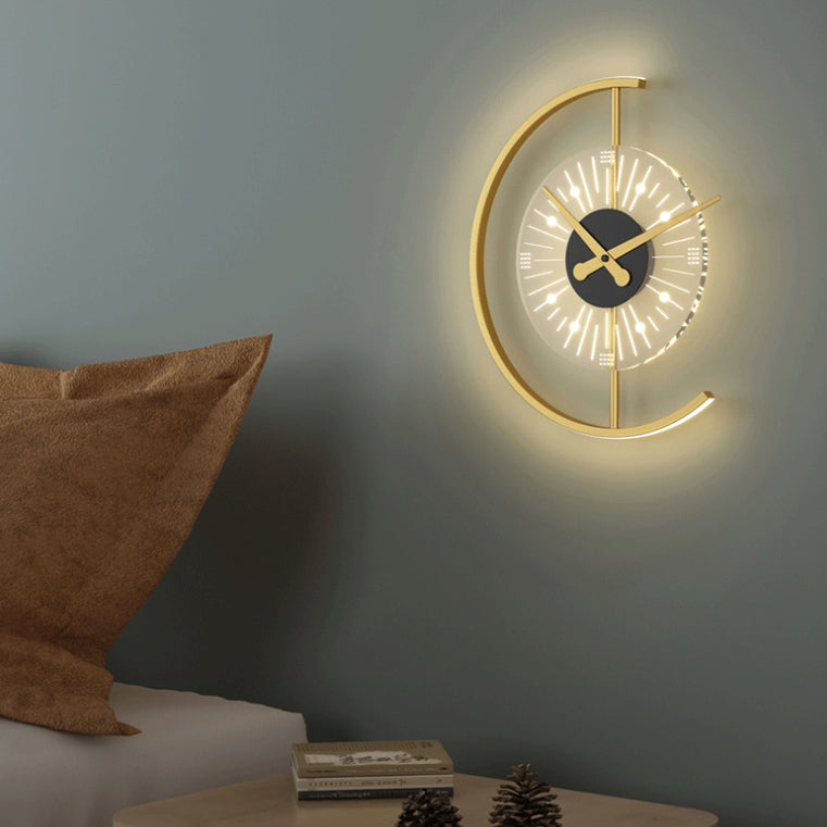 Contemporary Scandinavian Clock Semicircle Iron Acrylic LED Wall Sconce Lamp For Bedroom