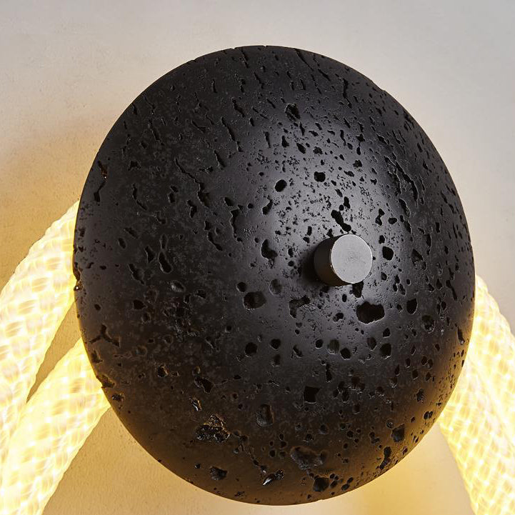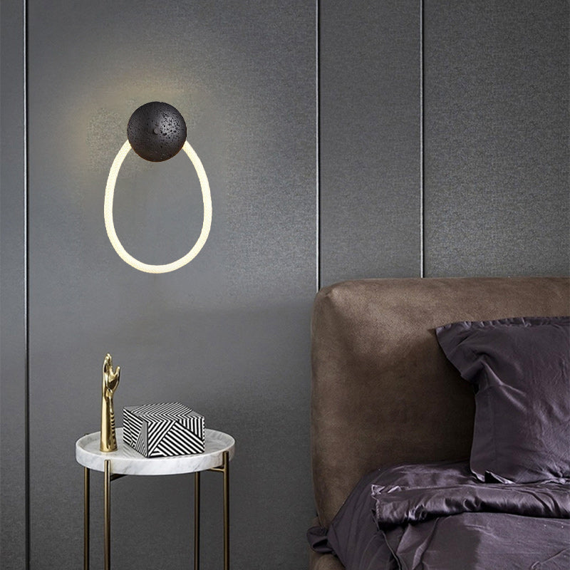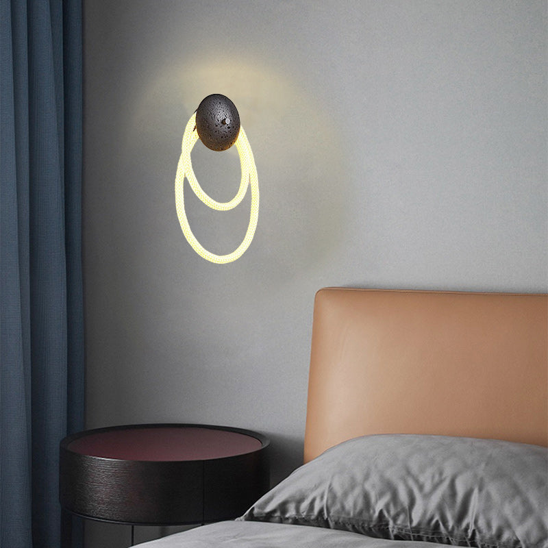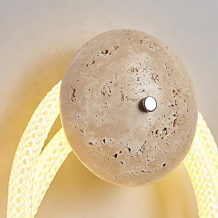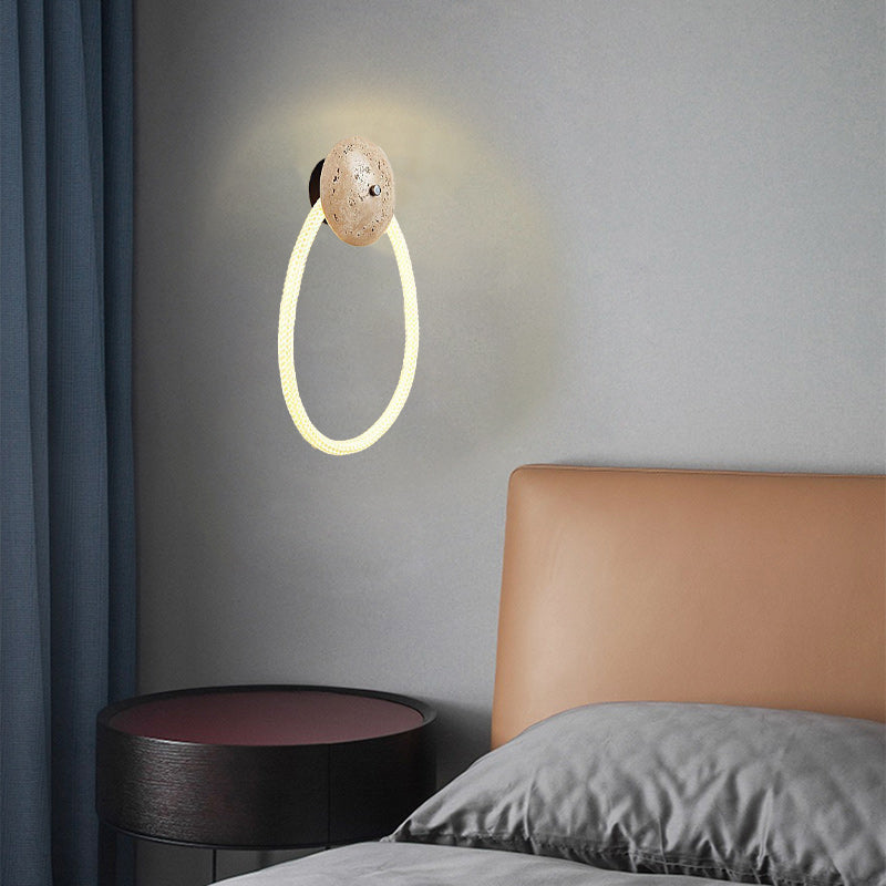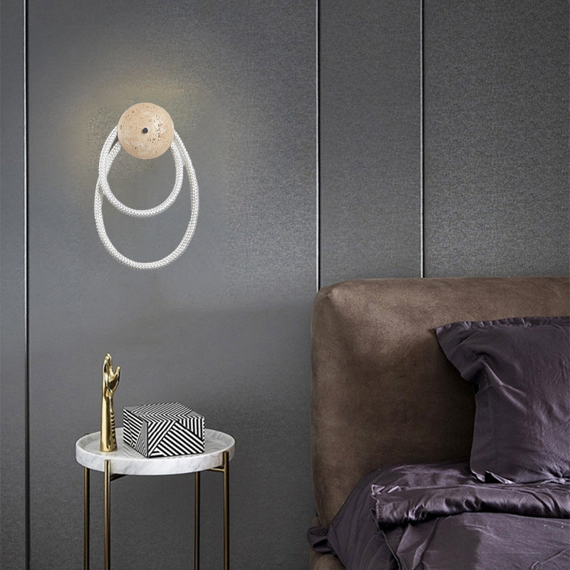 Contemporary Scandinavian Coil Disc Stone Premium Optical Woven Fiber LED Wall Sconce Lamp For Bedroom