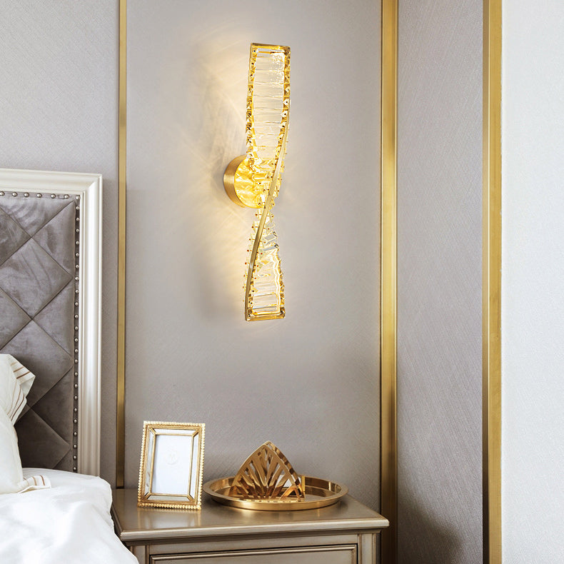 Contemporary Scandinavian Copper Crystal Twisted Design LED Wall Sconce Lamp For Living Room