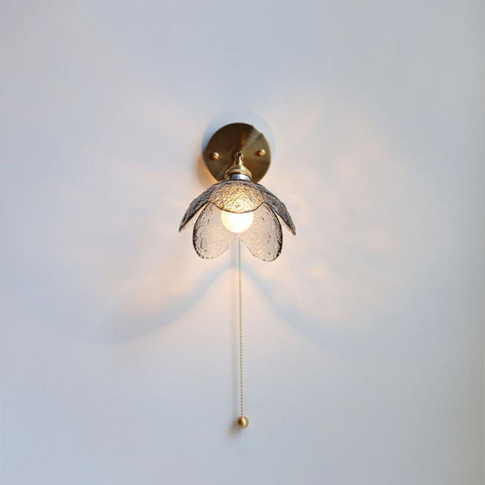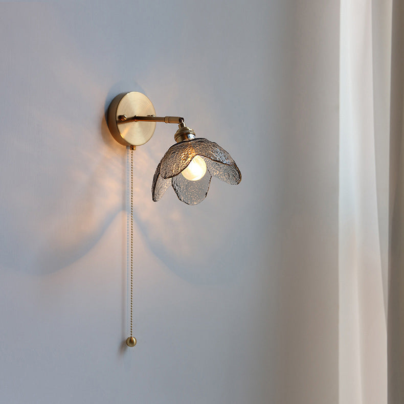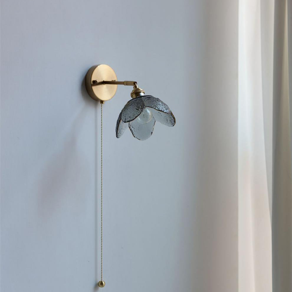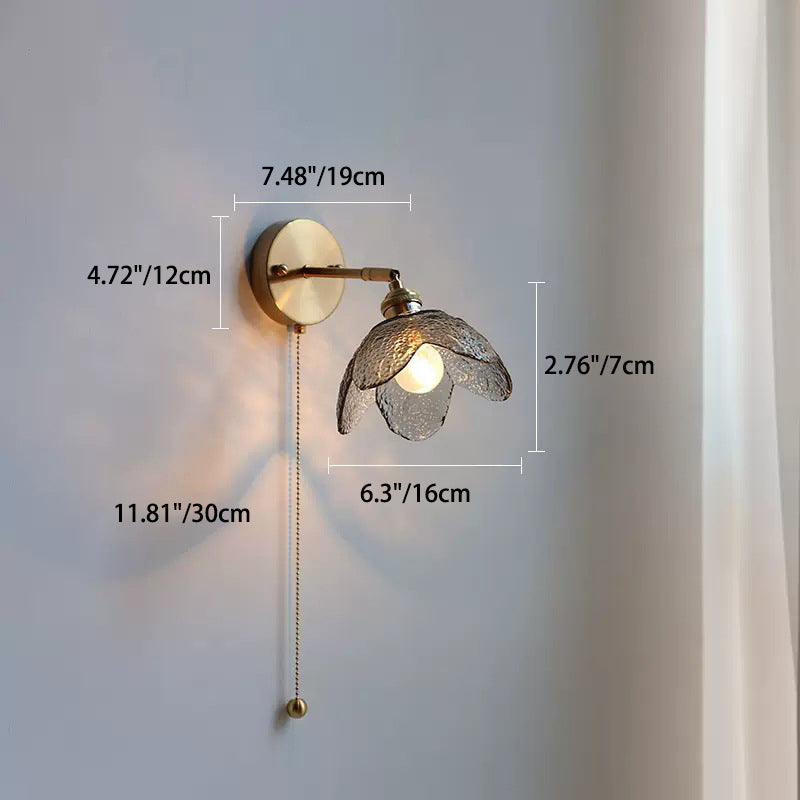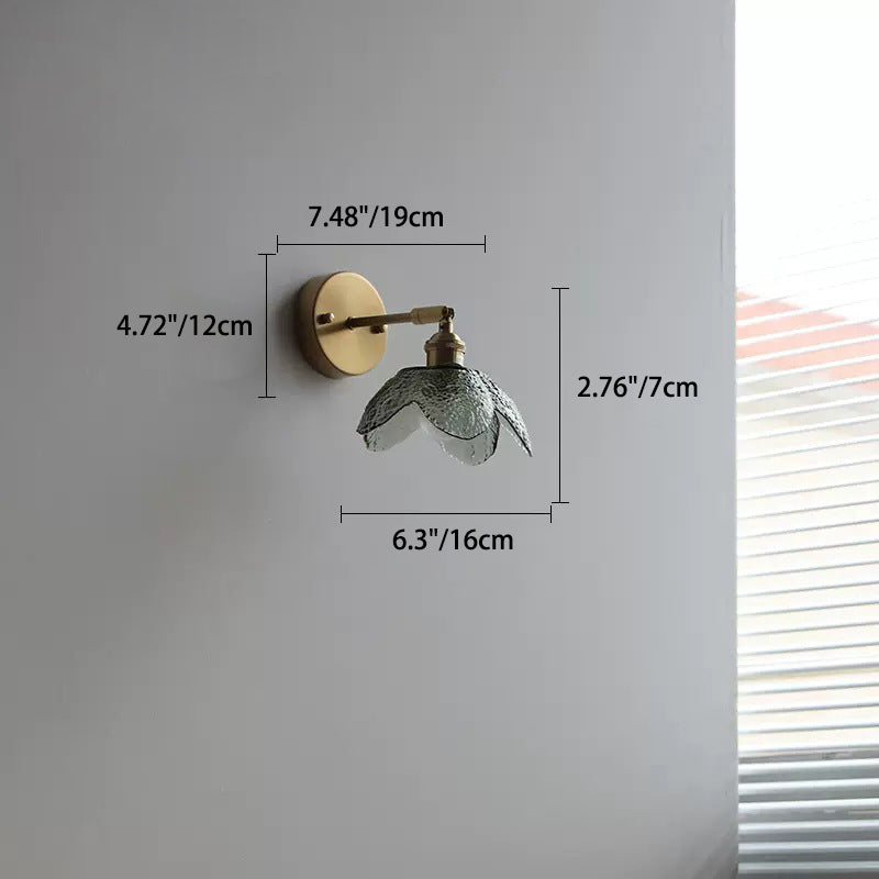 Contemporary Scandinavian Copper Glass Flower 1-Light Wall Sconce Lamp For Bedside