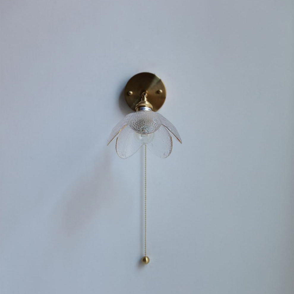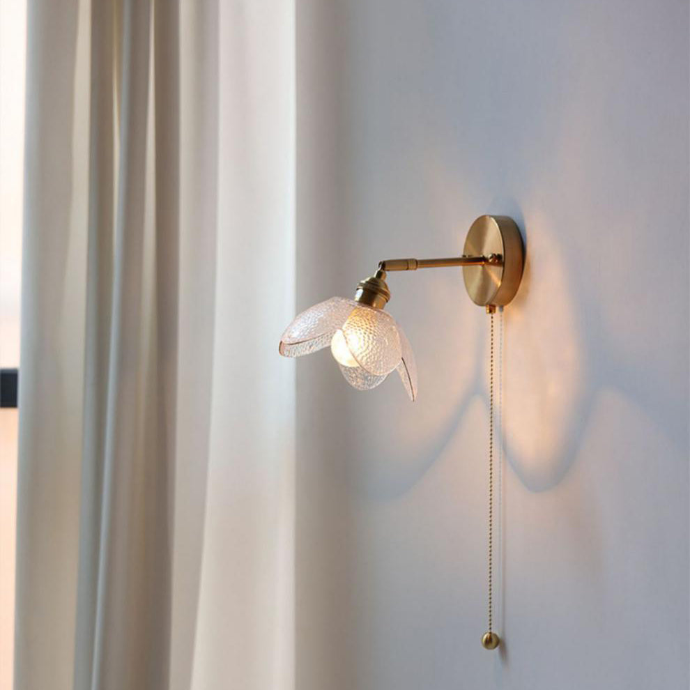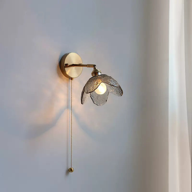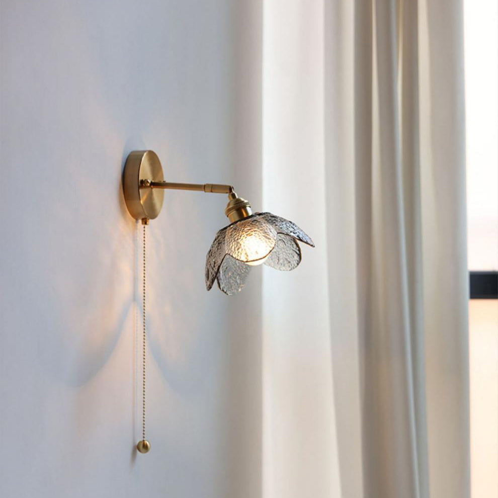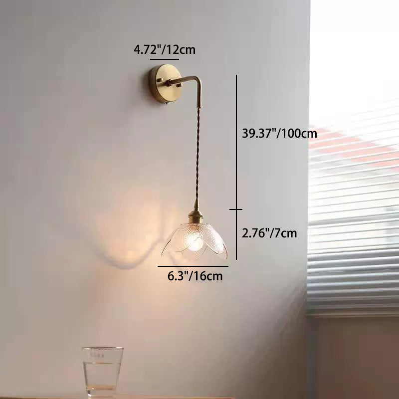 Contemporary Scandinavian Copper Glass Flower 1-Light Wall Sconce Lamp For Bedside