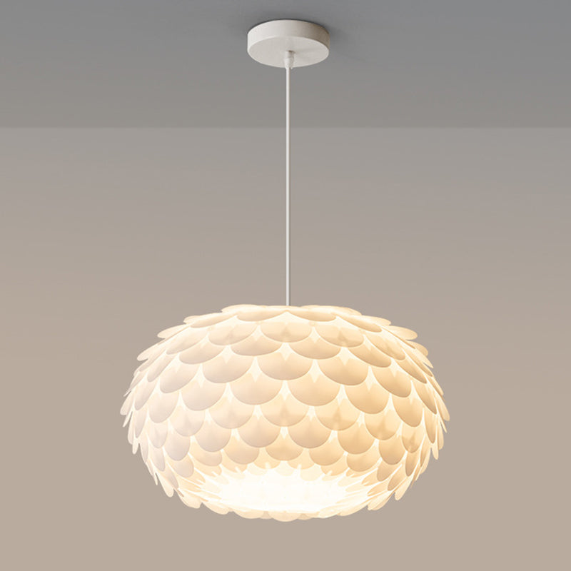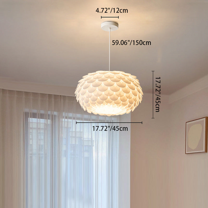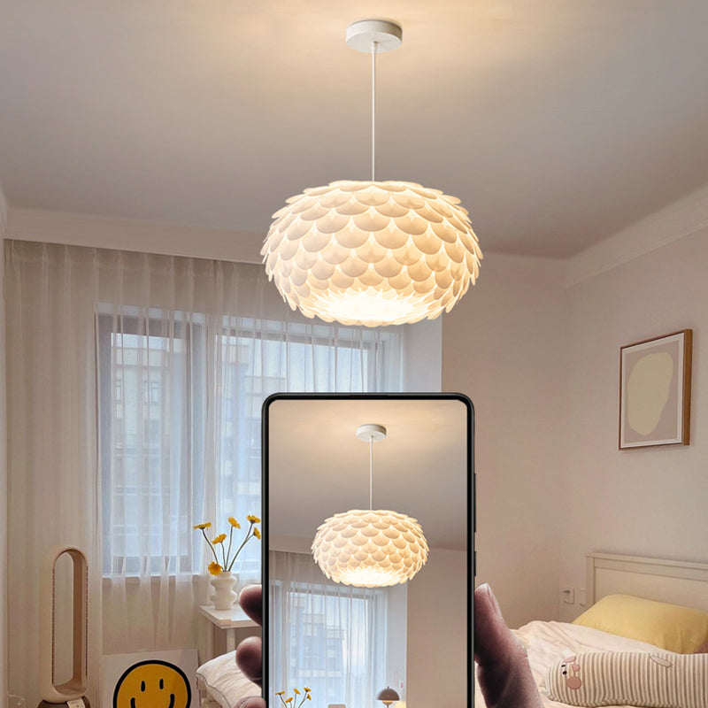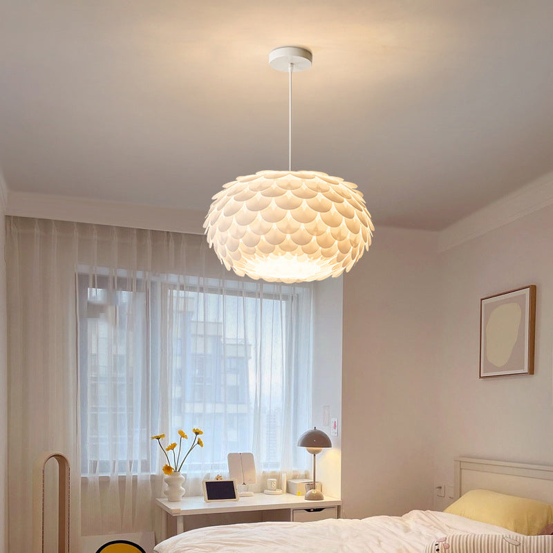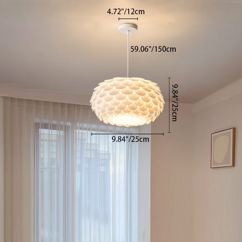 Contemporary Scandinavian Cream Flower Round Iron PVC 1-Light Pendant Light For Bedroom