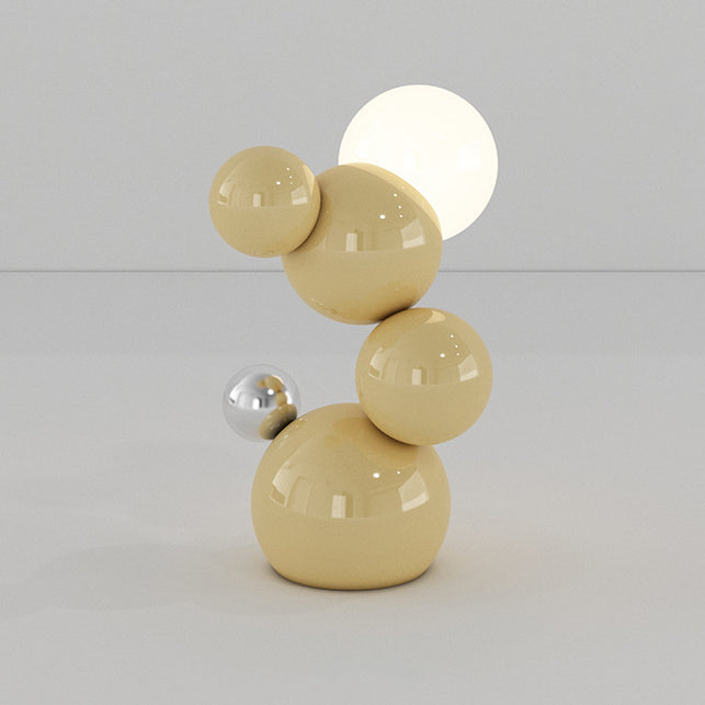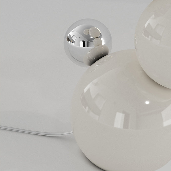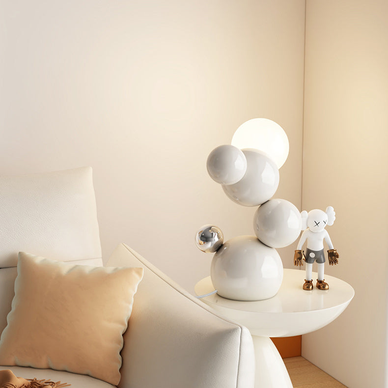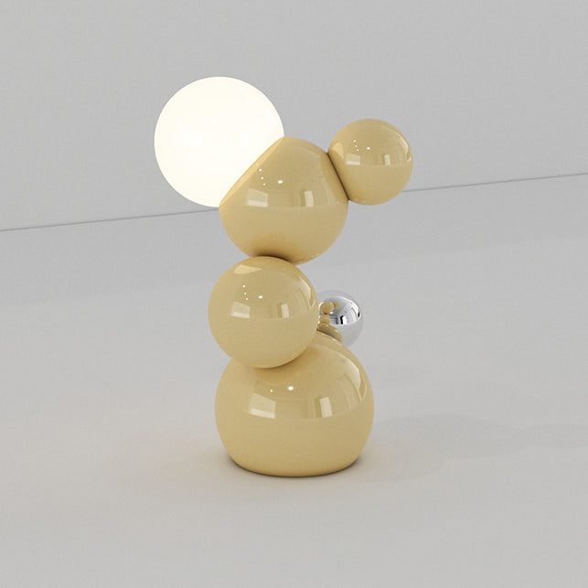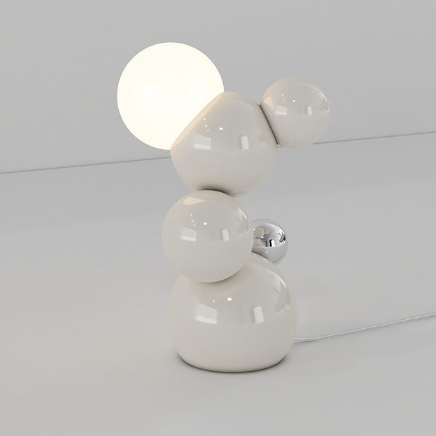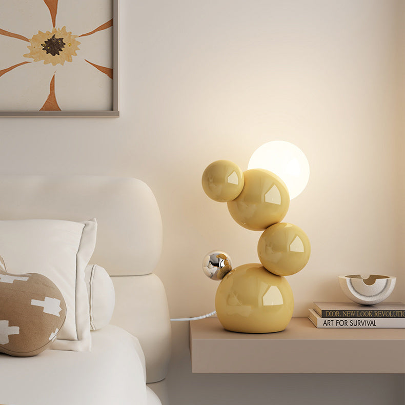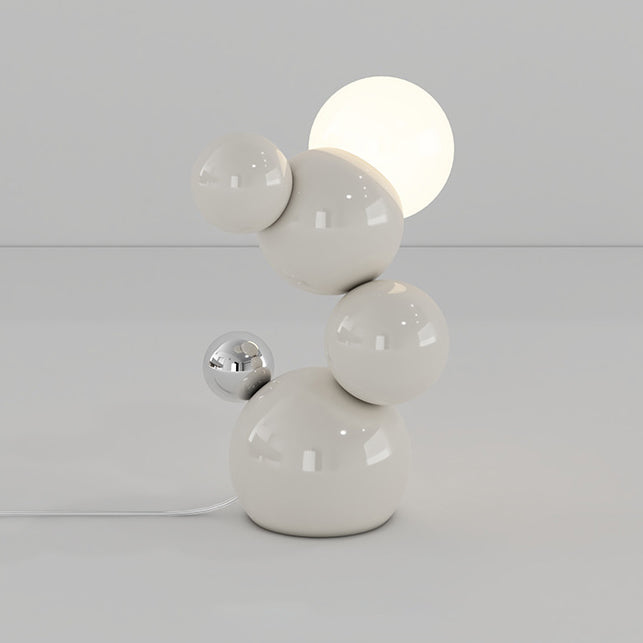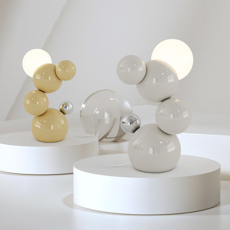 Contemporary Scandinavian Cream Geometric Abstract Iron Globe Ball Acrylic 1-Light Table Lamp For Bedroom
