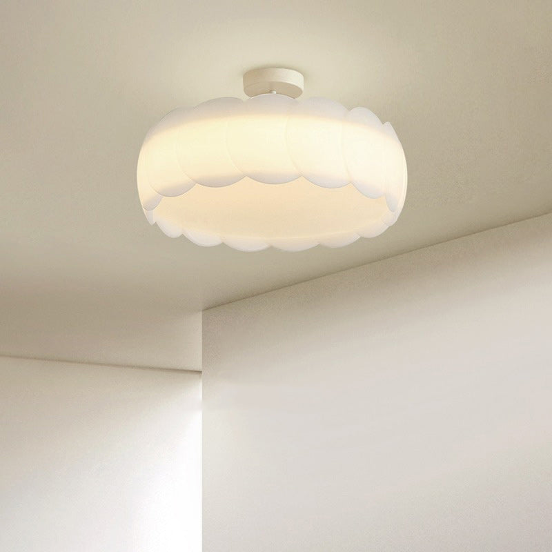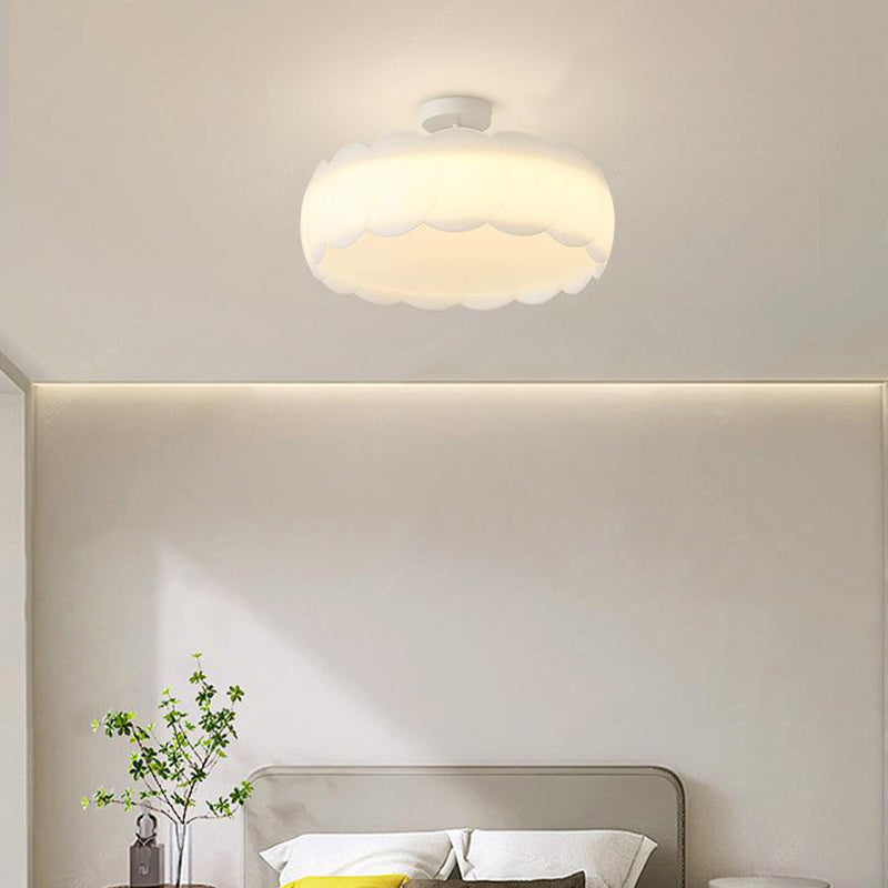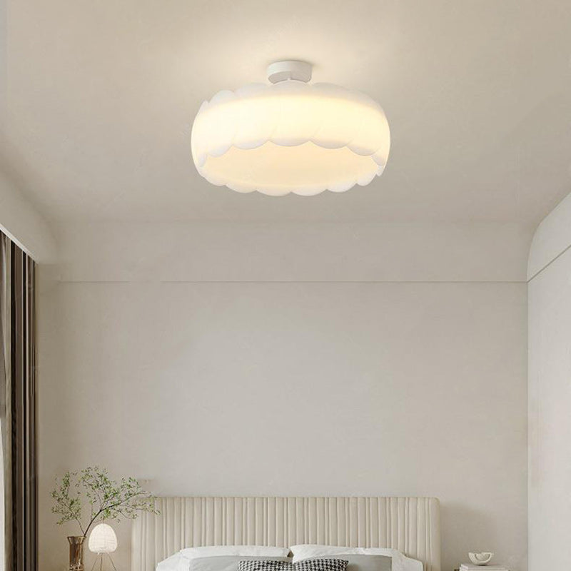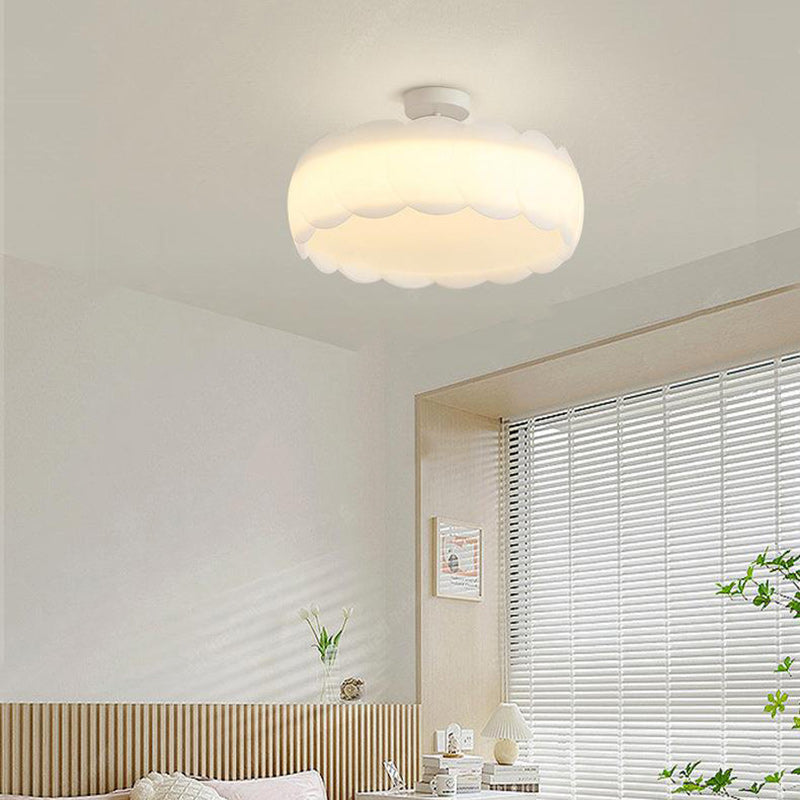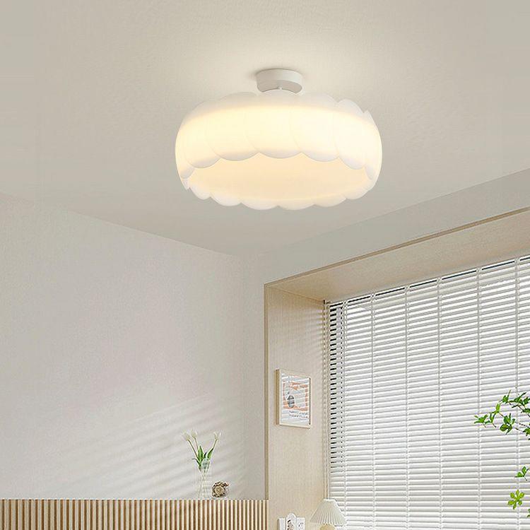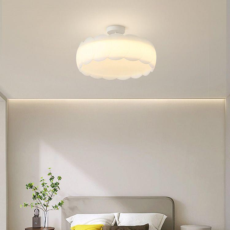 Contemporary Scandinavian Cream Round Lace PE Hardware Semi-Flush Mount Ceiling Light For Bedroom