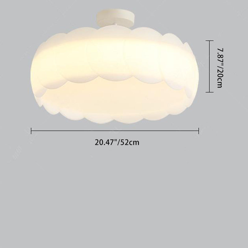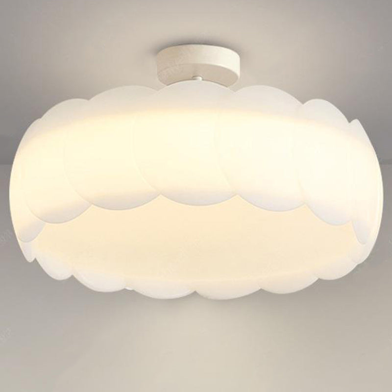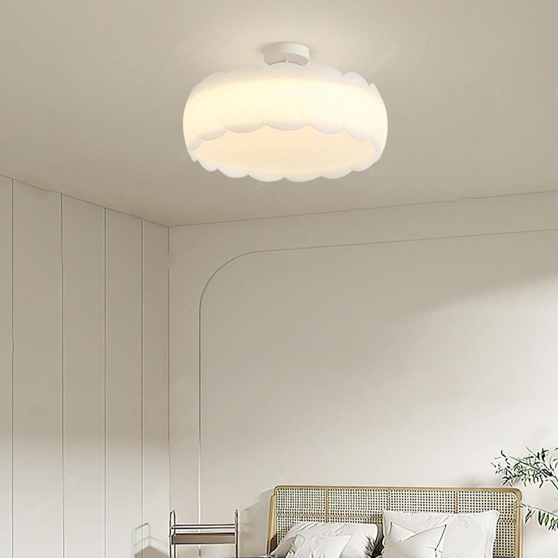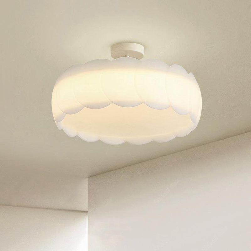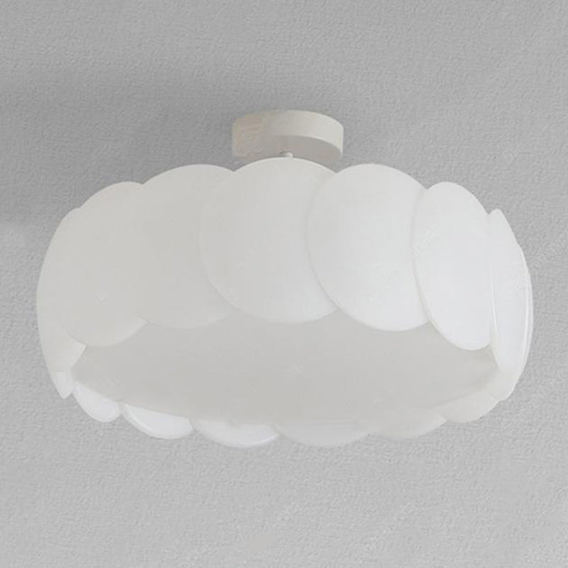 Contemporary Scandinavian Cream Round Lace PE Hardware Semi-Flush Mount Ceiling Light For Bedroom