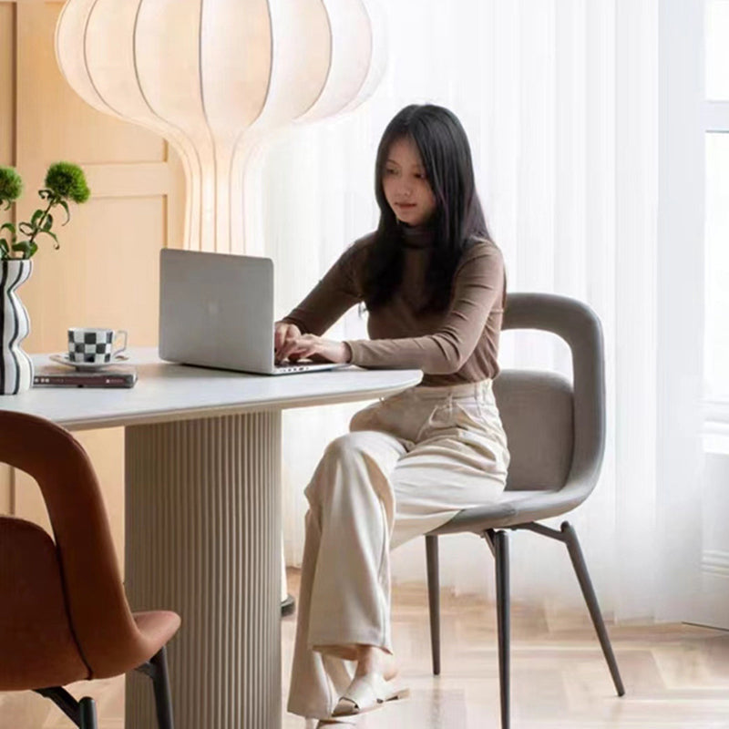Contemporary Scandinavian Curved Leather Metal Tapered Legs Dining Chair Backrest For Dining Room