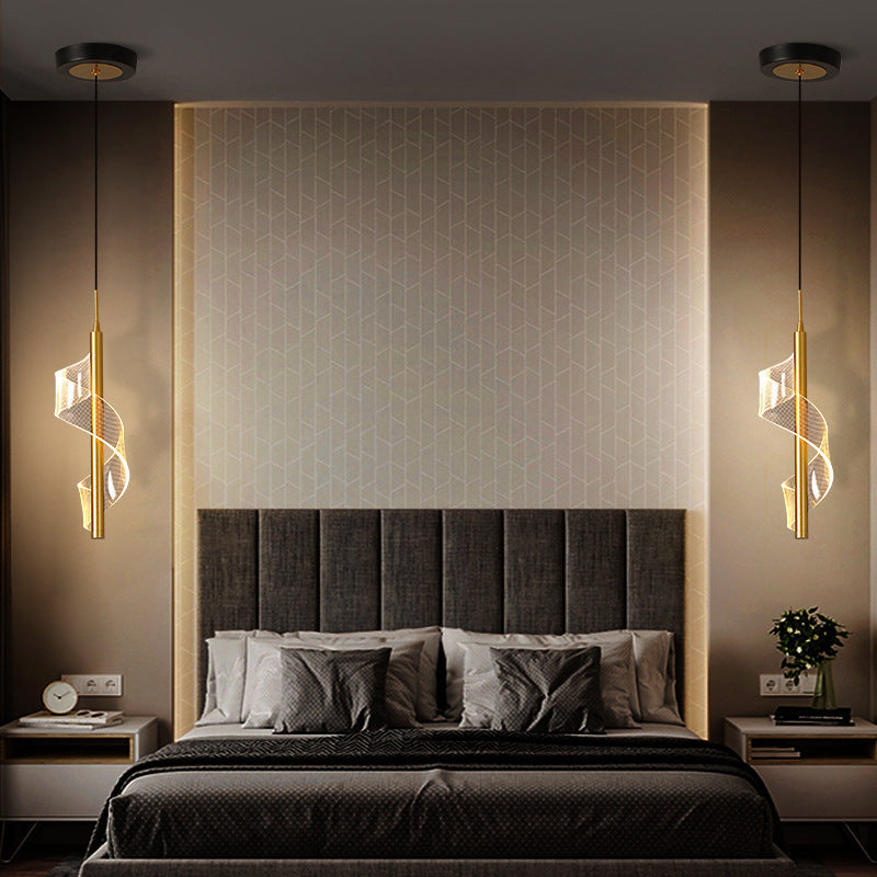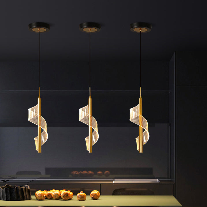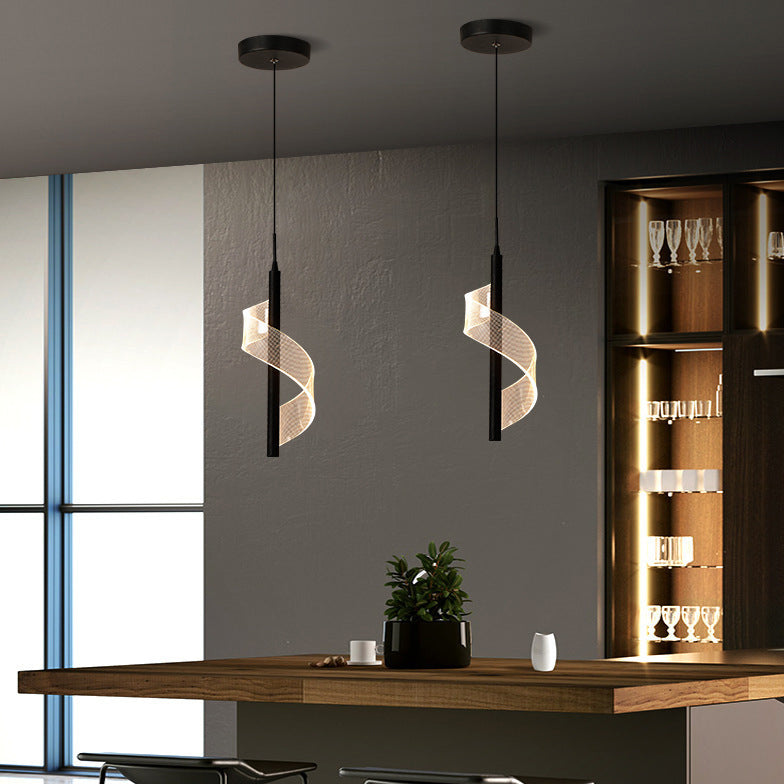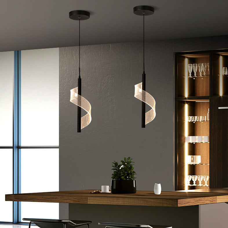 Contemporary Scandinavian Curved Long Acrylic Iron LED Pendant Light For Living Room