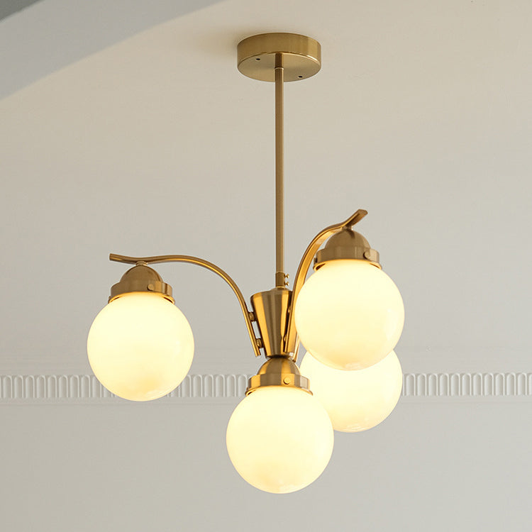 Contemporary Scandinavian Curved Magic Bean Round Glass Iron 4/6 Light Chandelier For Living Room