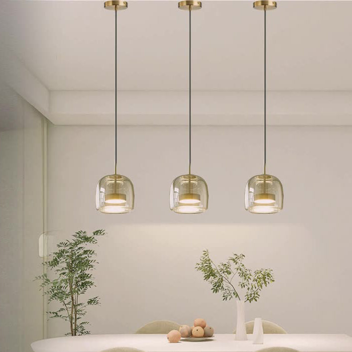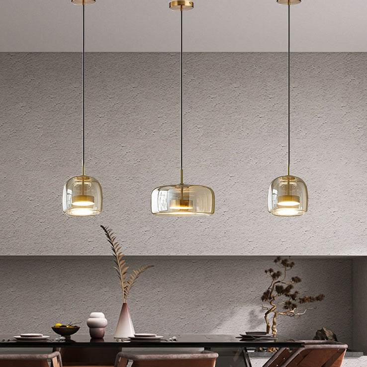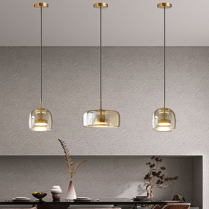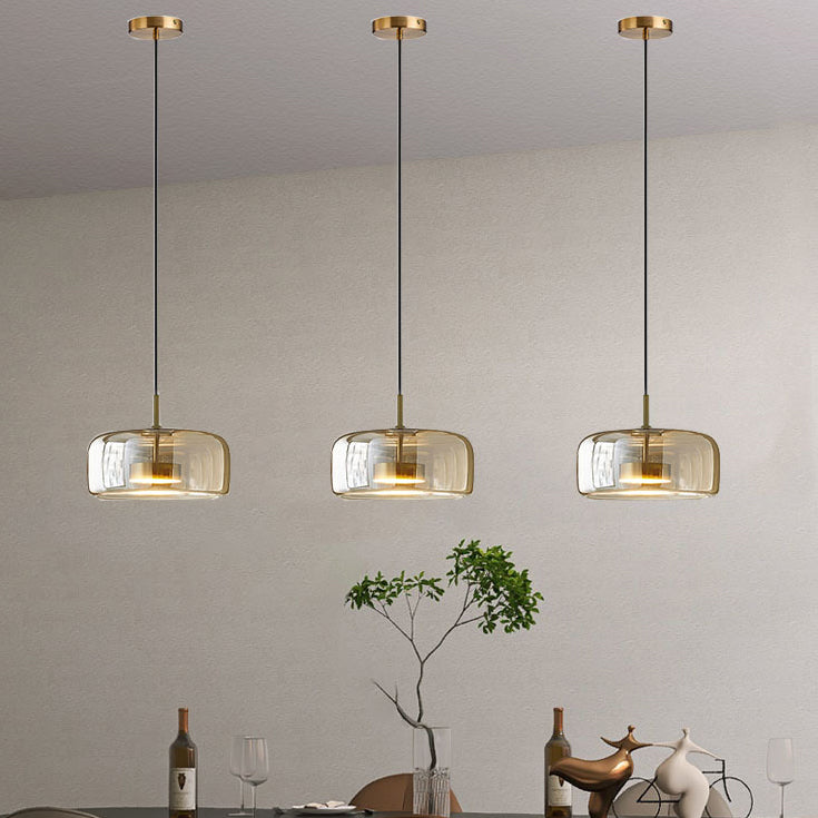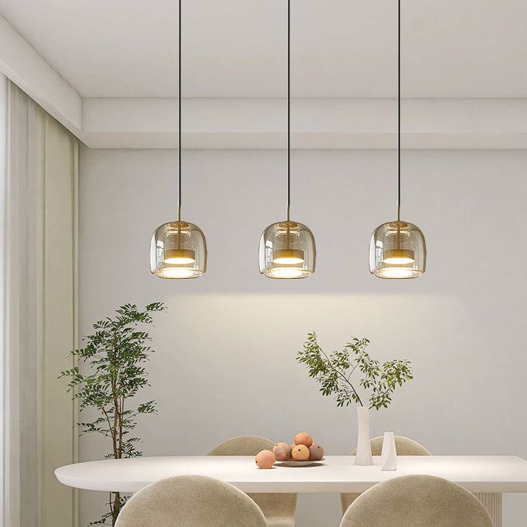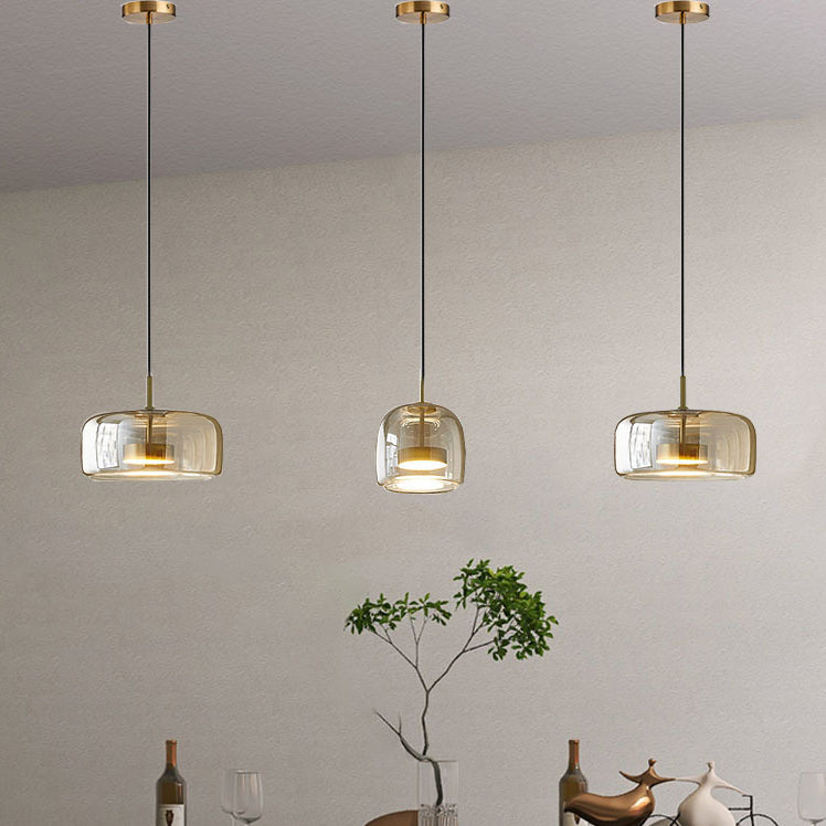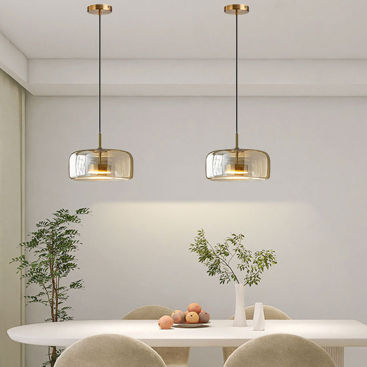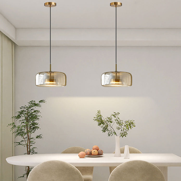 Contemporary Scandinavian Cylinder Iron Glass 1-Light Pendant Light For Bedroom