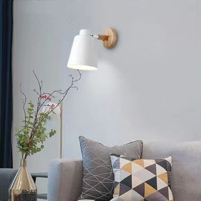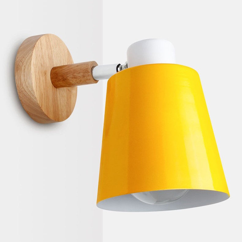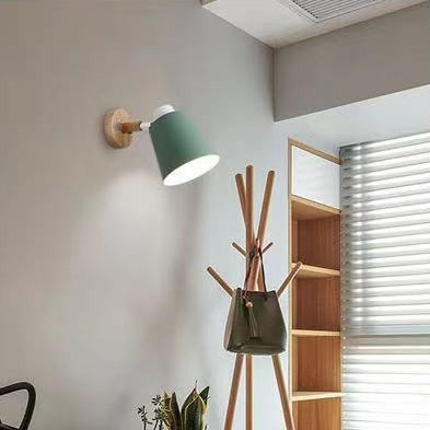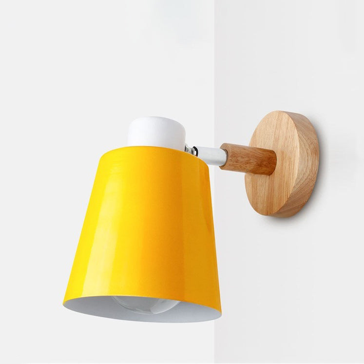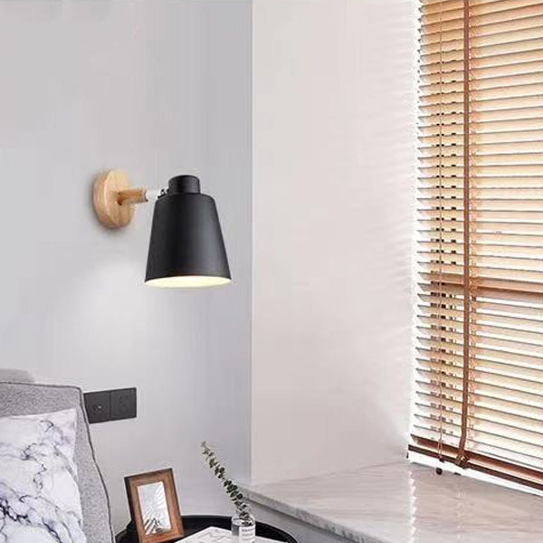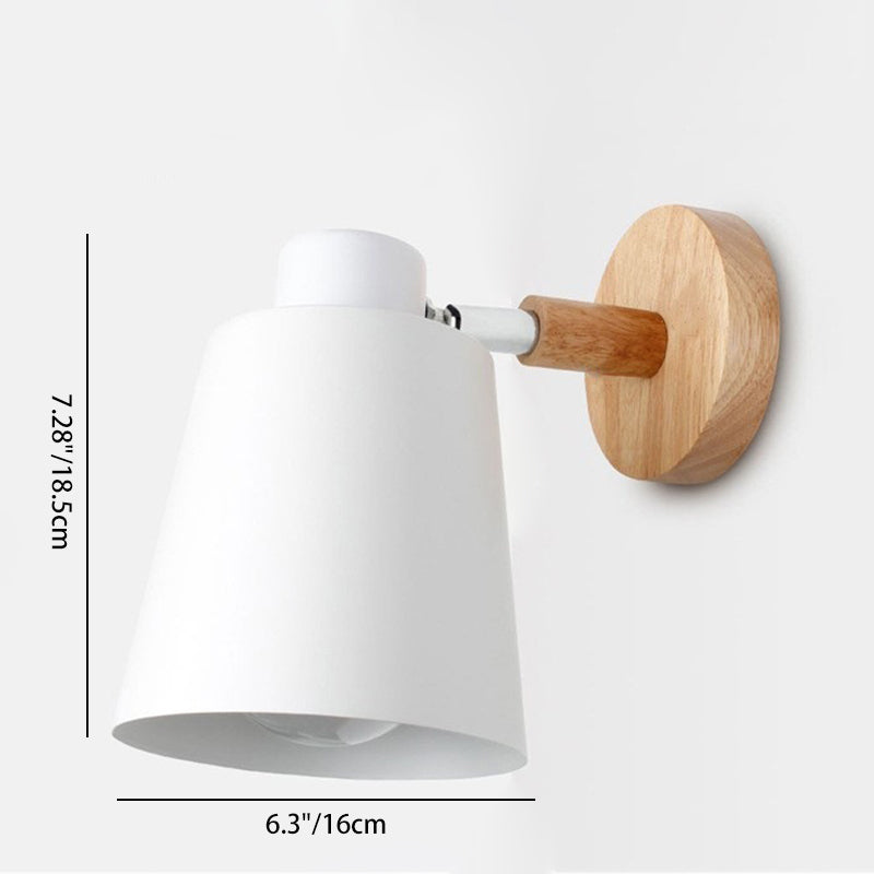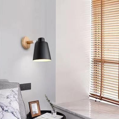 Contemporary Scandinavian Cylindrical Iron Wood 1-Light Wall Sconce Lamp For Bedroom