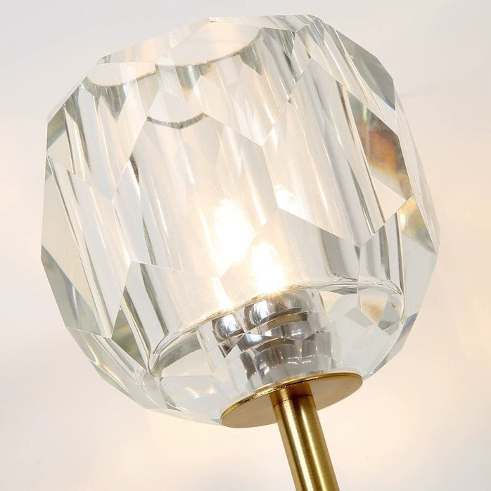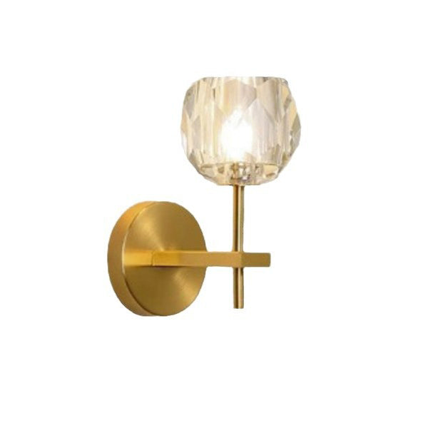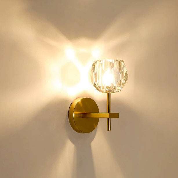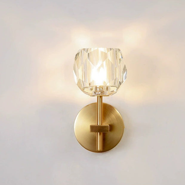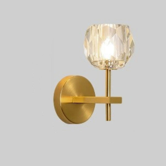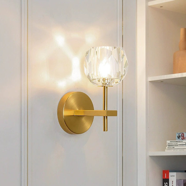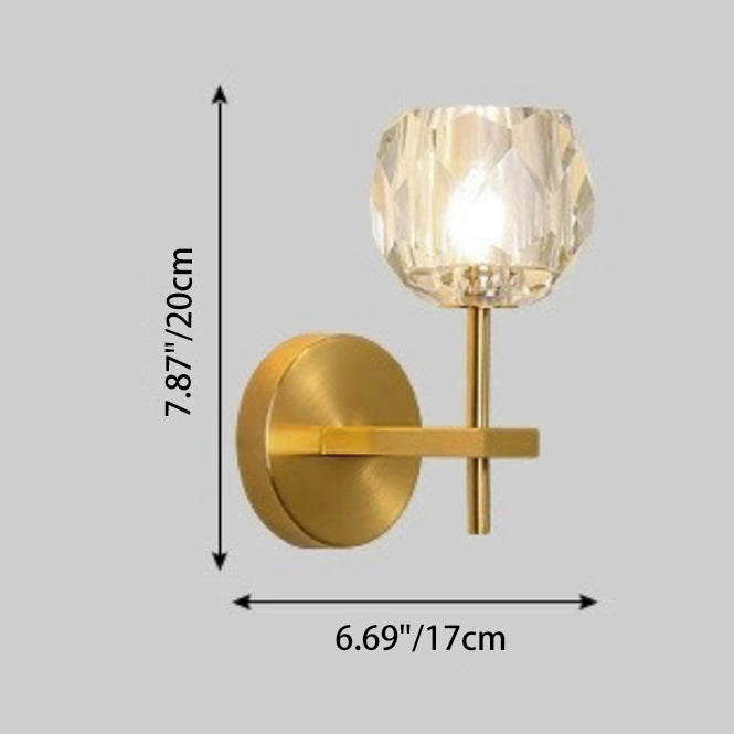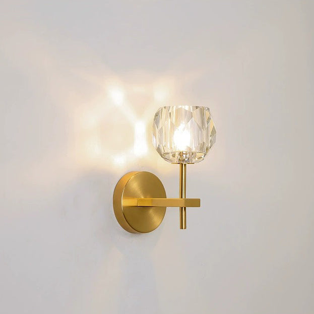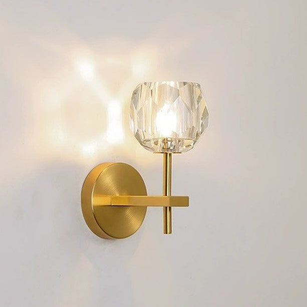 Contemporary Scandinavian Diamond-Shaped Crystal Wall Sconce Lamp With Iron Base 1-Light For Bedroom