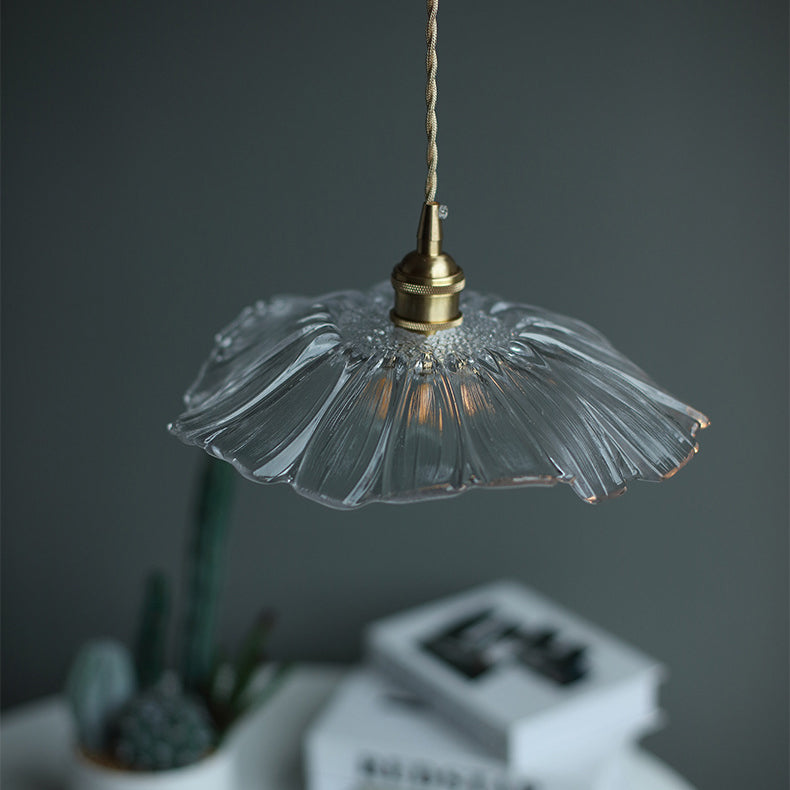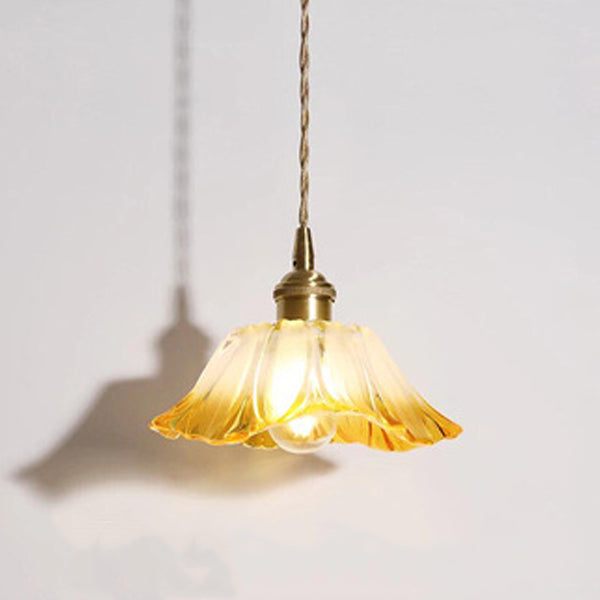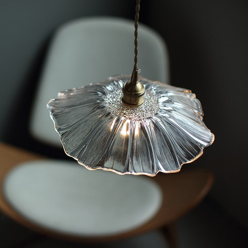 Contemporary Scandinavian Flowers Petals Irregular Round Glass Iron 1-Light Pendant Light For Living Room