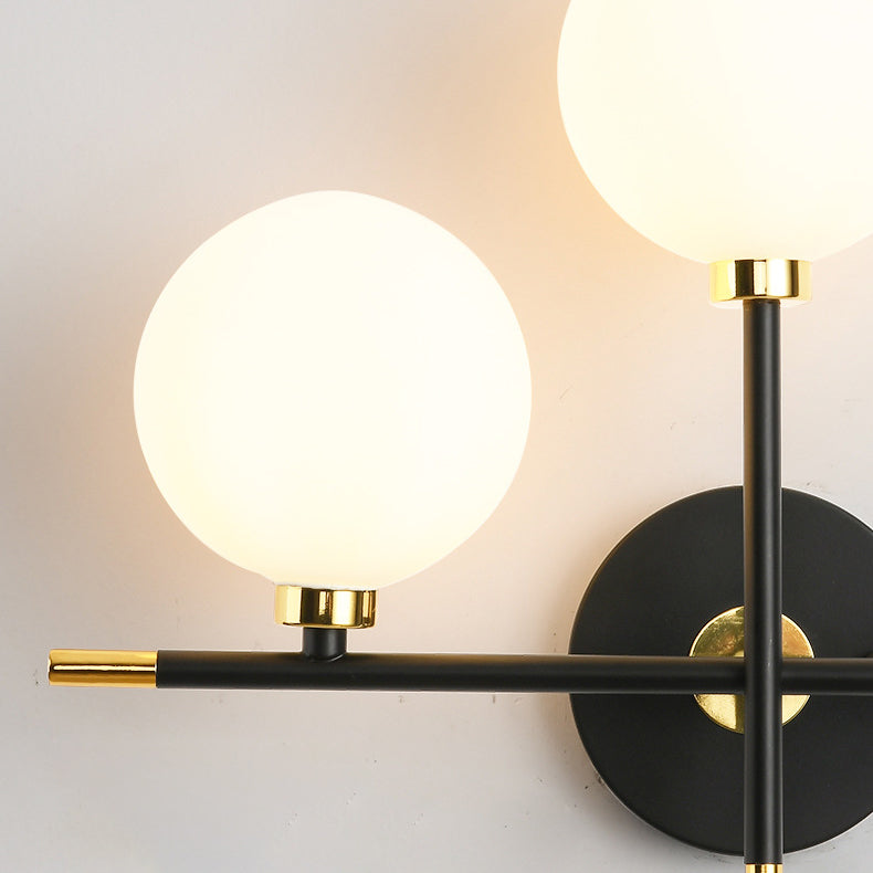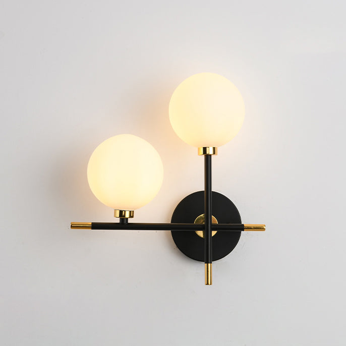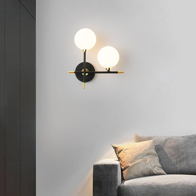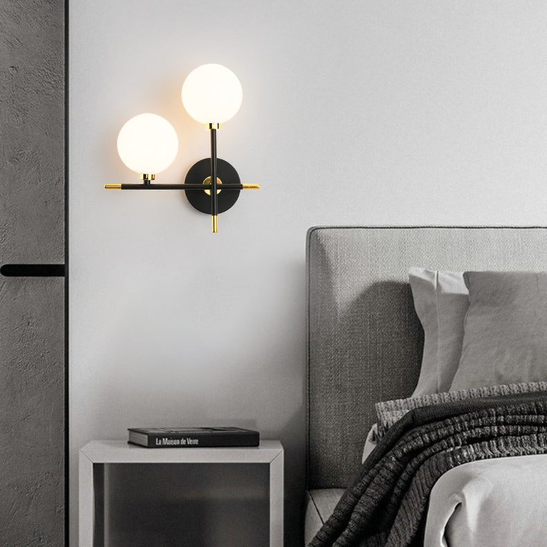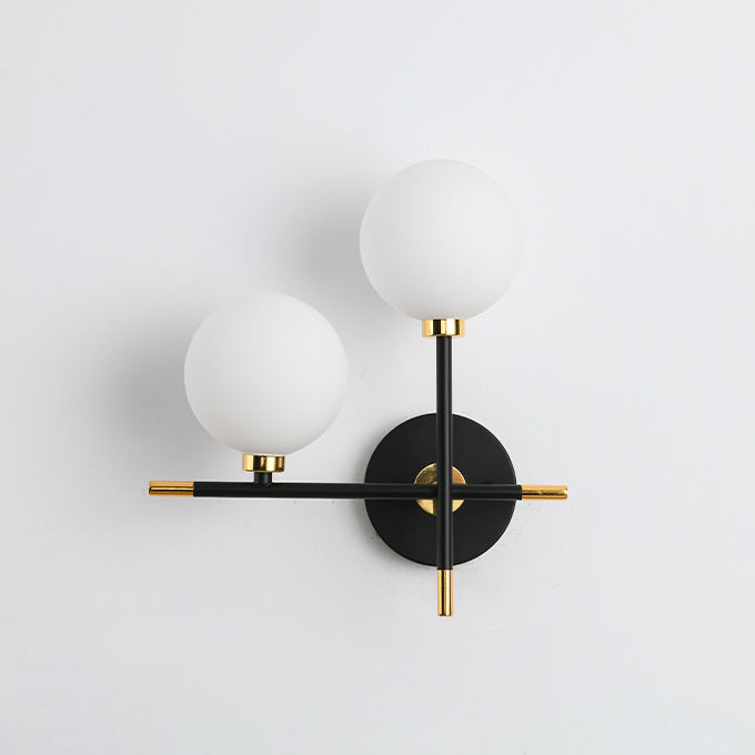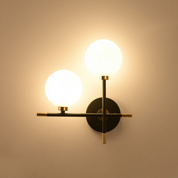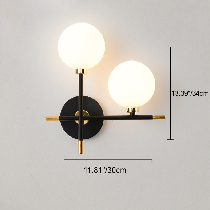 Contemporary Scandinavian Glass Orb Iron 2-Light Wall Sconce Lamp For Hallway