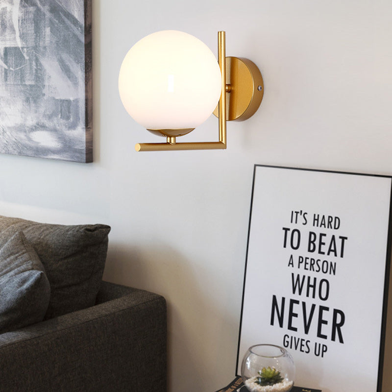 Contemporary Scandinavian Globe Iron Glass 1-Light Wall Sconce Lamp For Living Room