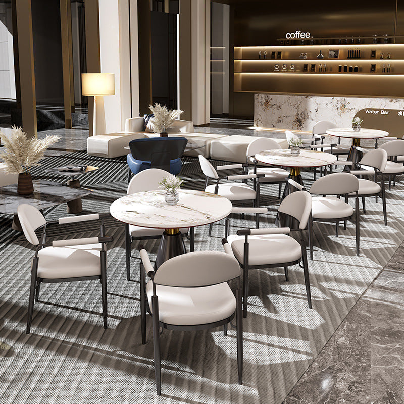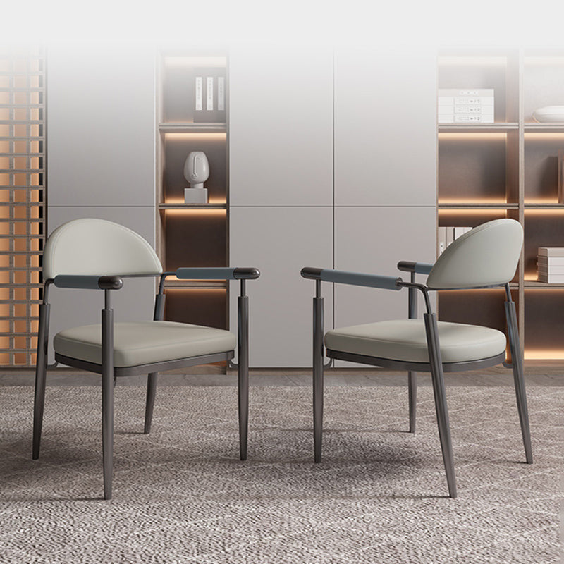 Contemporary Scandinavian Half Round Arc Square Napa Leather Steel Dining Chair Backrest Arm For Dining Room
