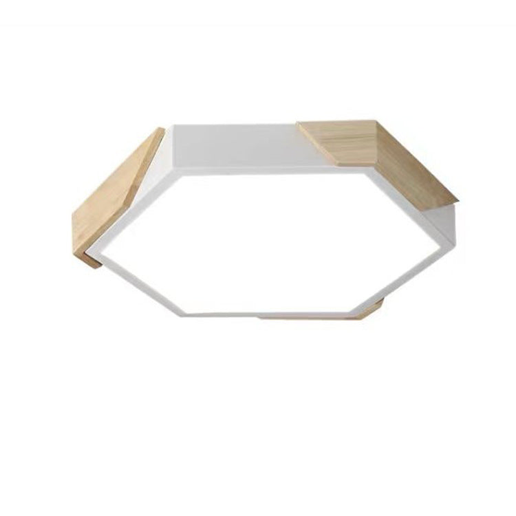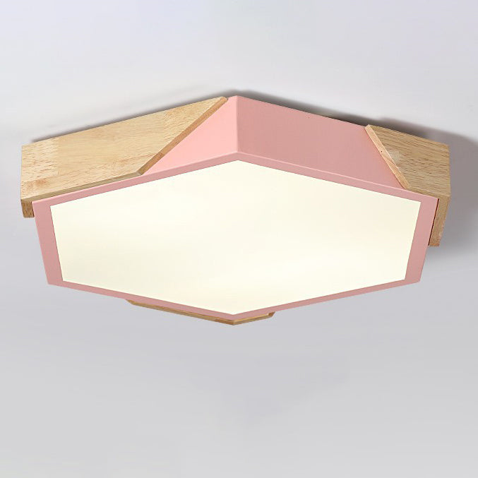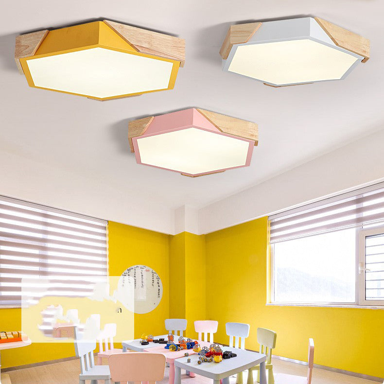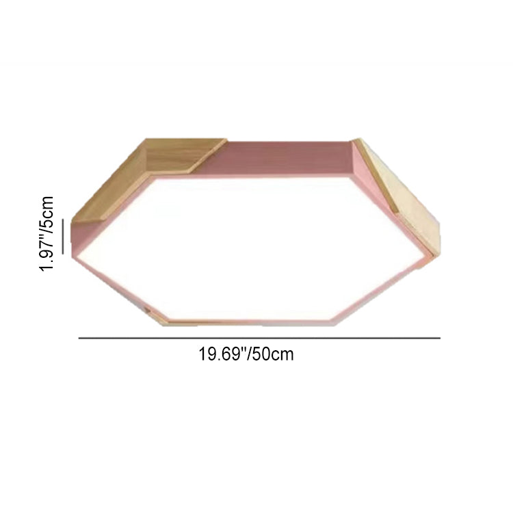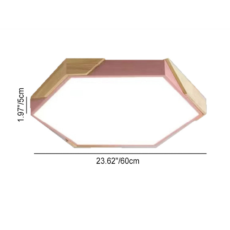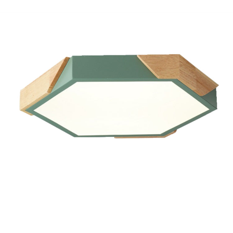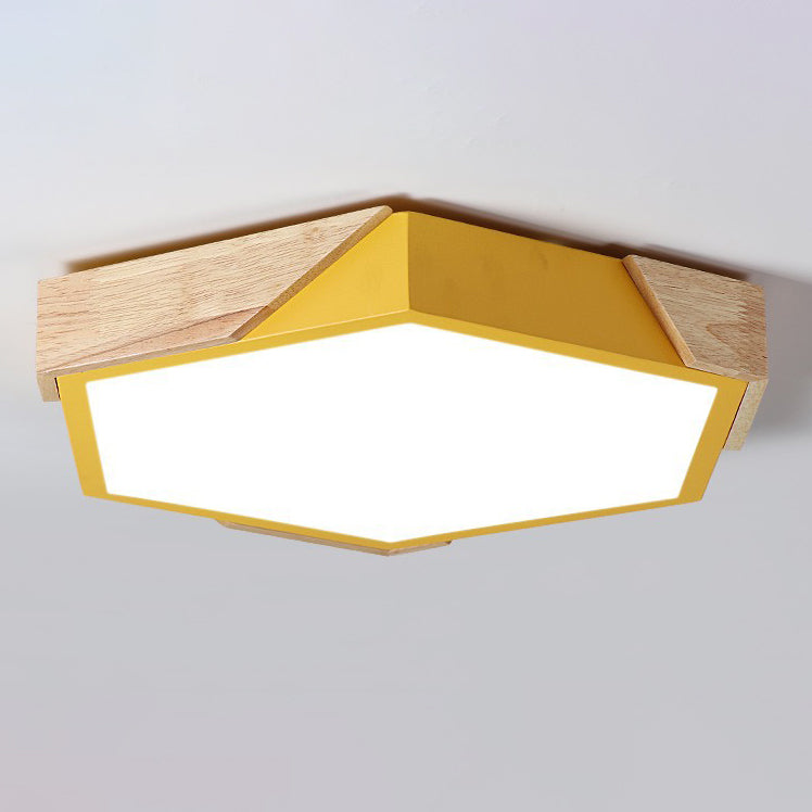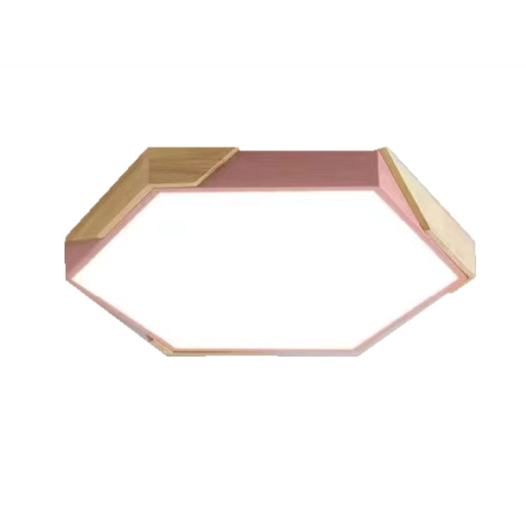 Contemporary Scandinavian Hexagonal Iron Wood Macaron LED Flush Mount Ceiling Light For Bedroom