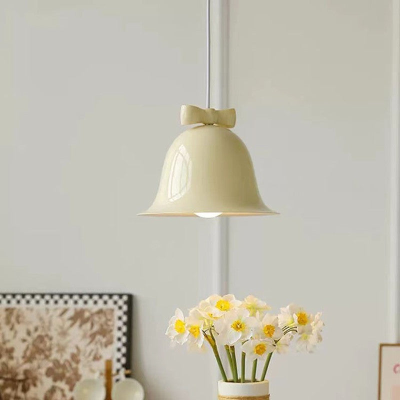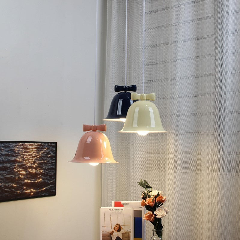 Contemporary Scandinavian Iron Bowknot Bell 1-Light Pendant Light For Living Room