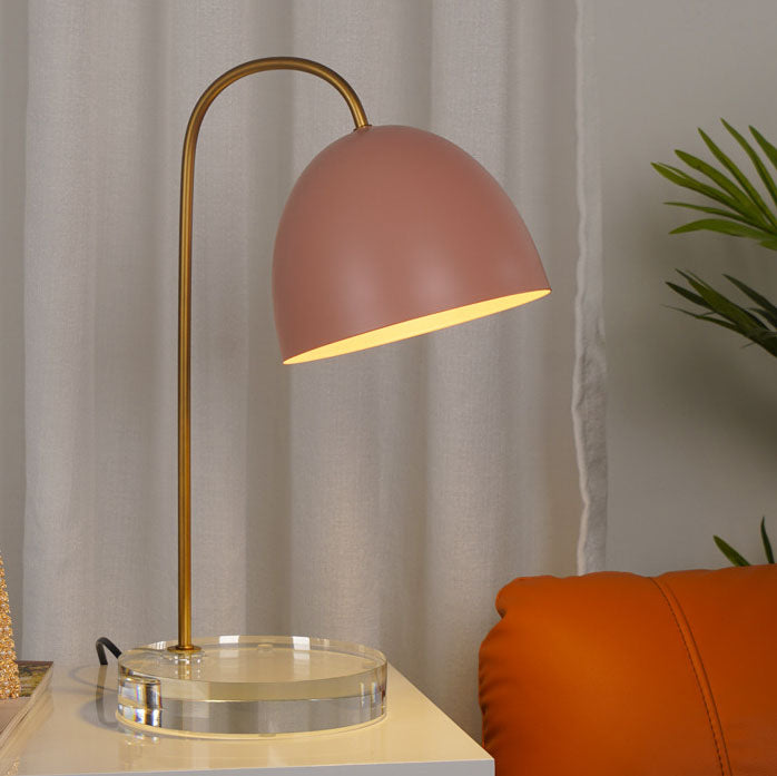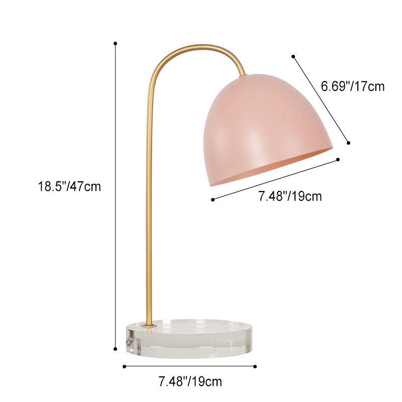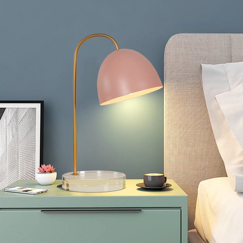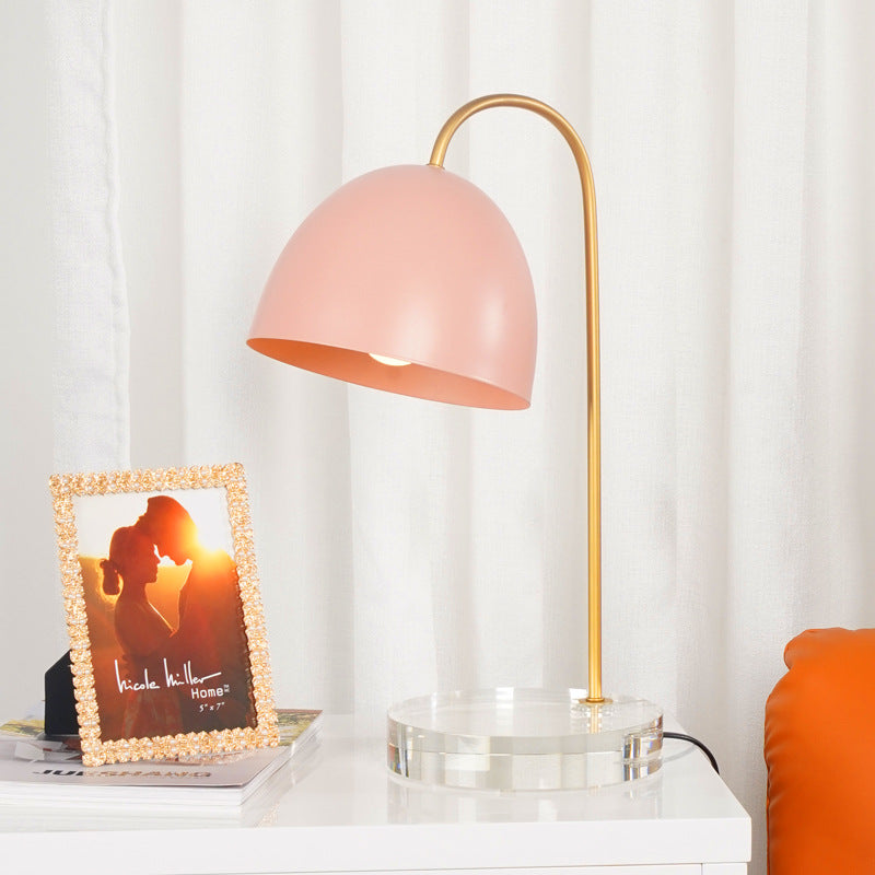 Contemporary Scandinavian Iron Dome Shade Crystal Base 1-Light Table Lamp For Bedroom