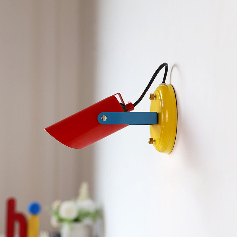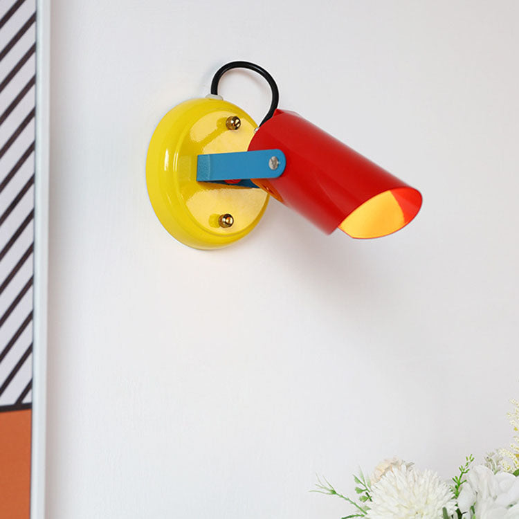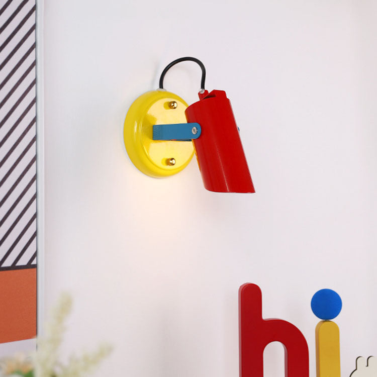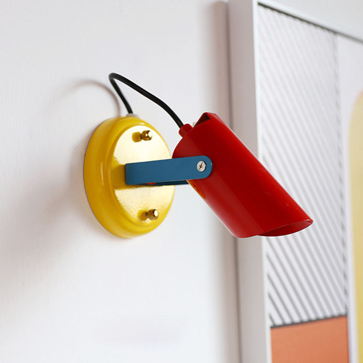 Contemporary Scandinavian Iron Geometric Cylinder 1-Light Adjustable Wall Sconce Lamp For Living Room