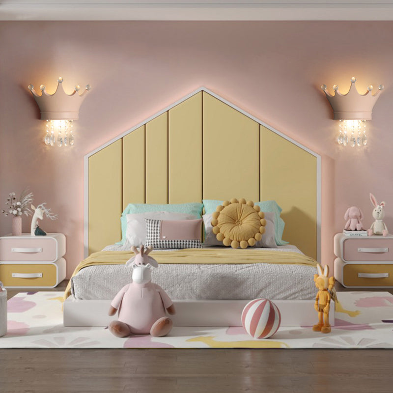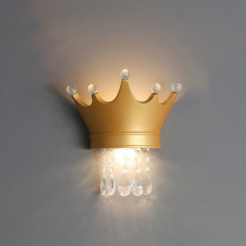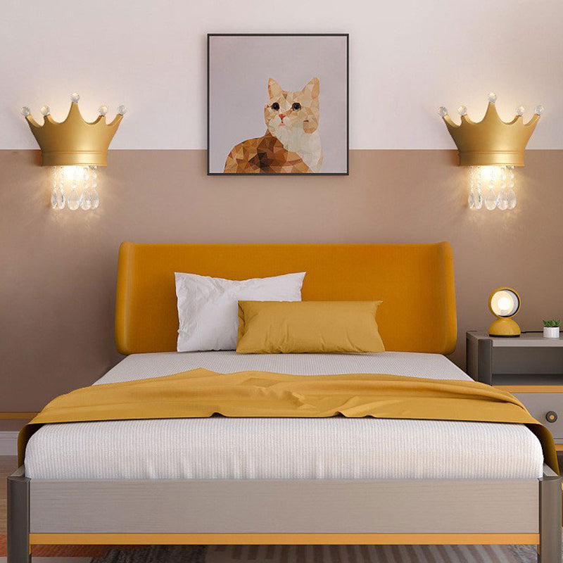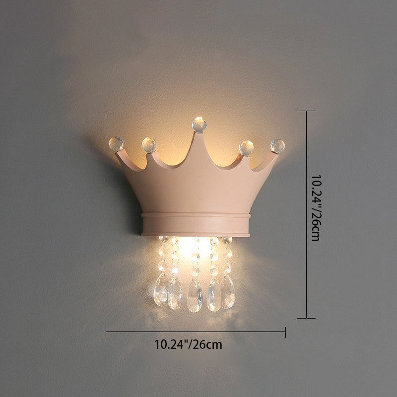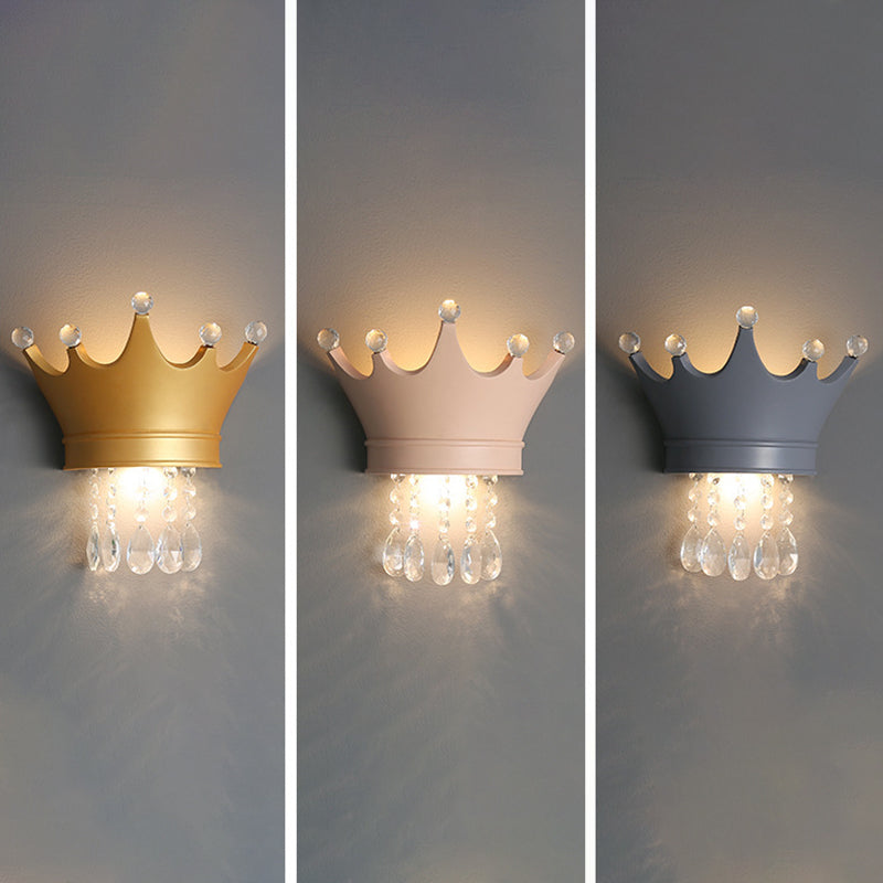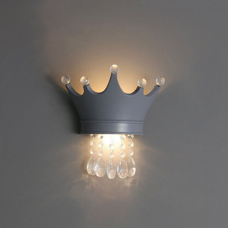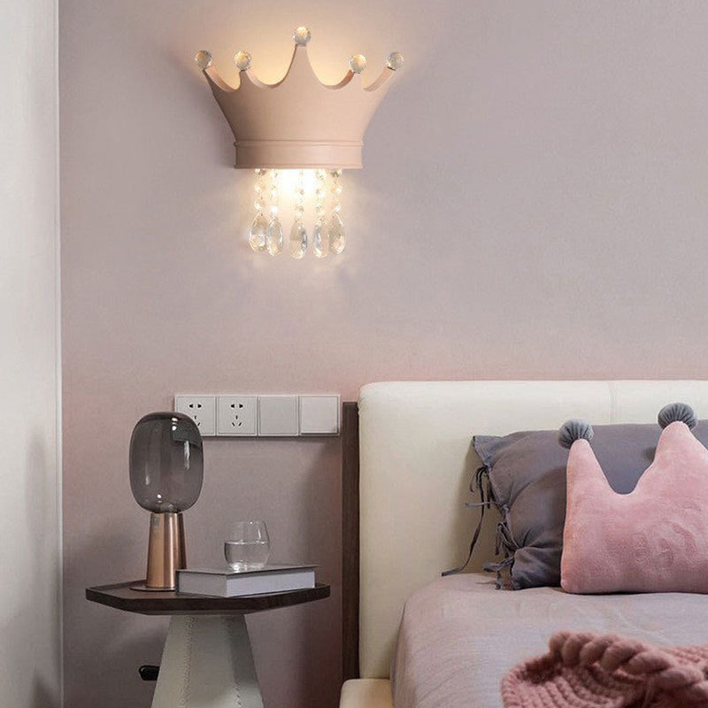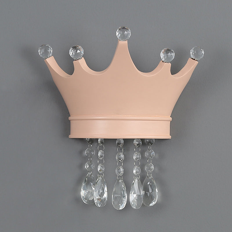 Contemporary Scandinavian Kids Crown Water Drops Resin Crystal 2-Light Wall Sconce Lamp For Bedroom