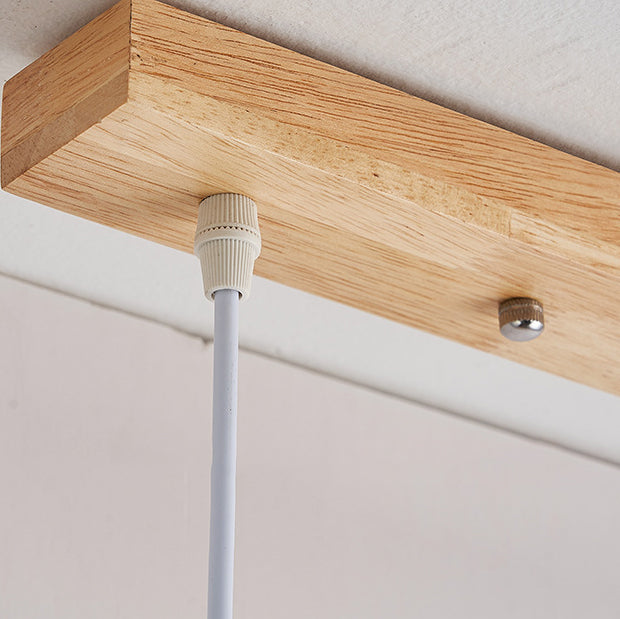 Contemporary Scandinavian Long Cylinder Glass Wood 4-Light Island Light Chandelier For Living Room