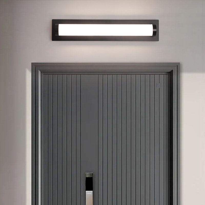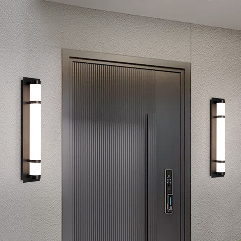Contemporary Scandinavian Long Cylinder Rectangle Base Iron Acrylic LED Wall Sconce Lamp For Outdoor Patio