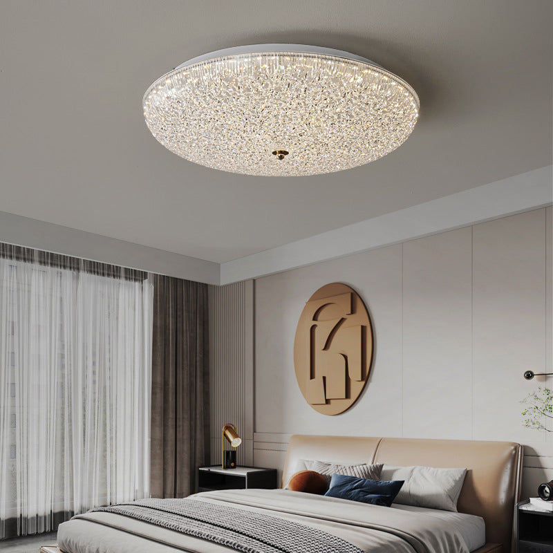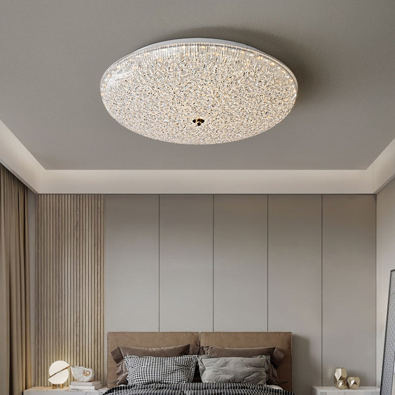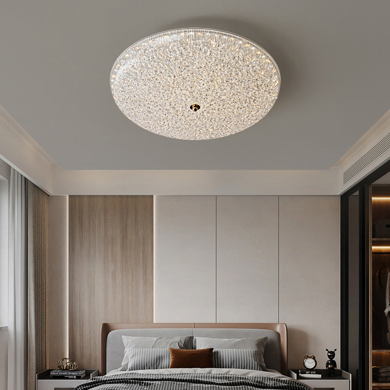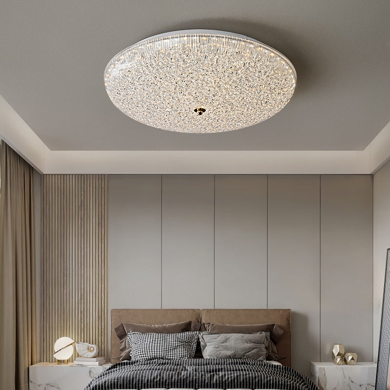 Contemporary Scandinavian Metal Acrylic Crystal Sand Semicircle LED Flush Mount Ceiling Light For Bedroom