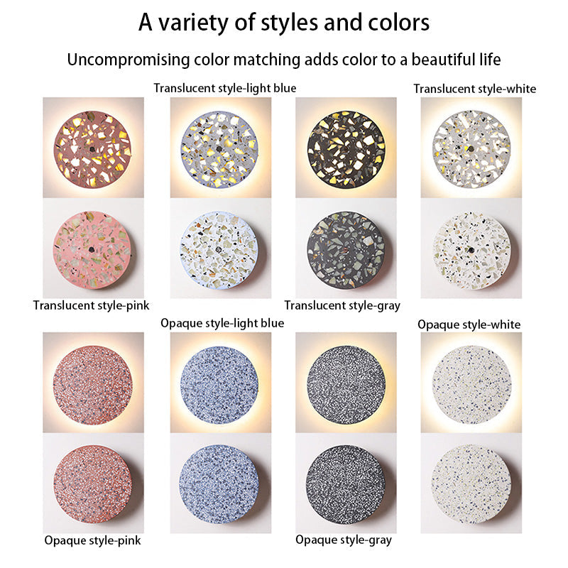 Contemporary Scandinavian Metal Terrazzo Round LED Wall Sconce Lamp For Living Room