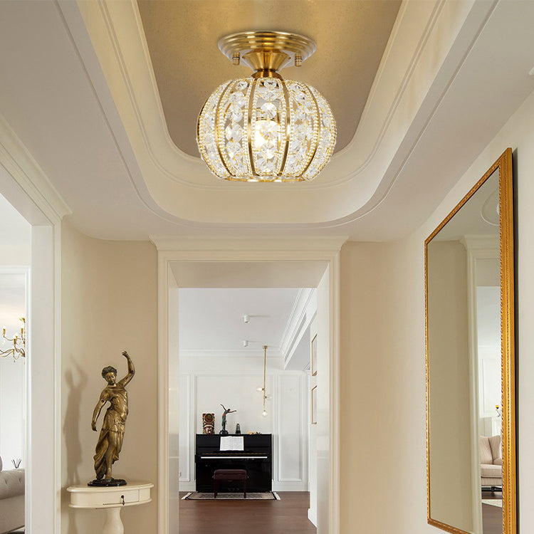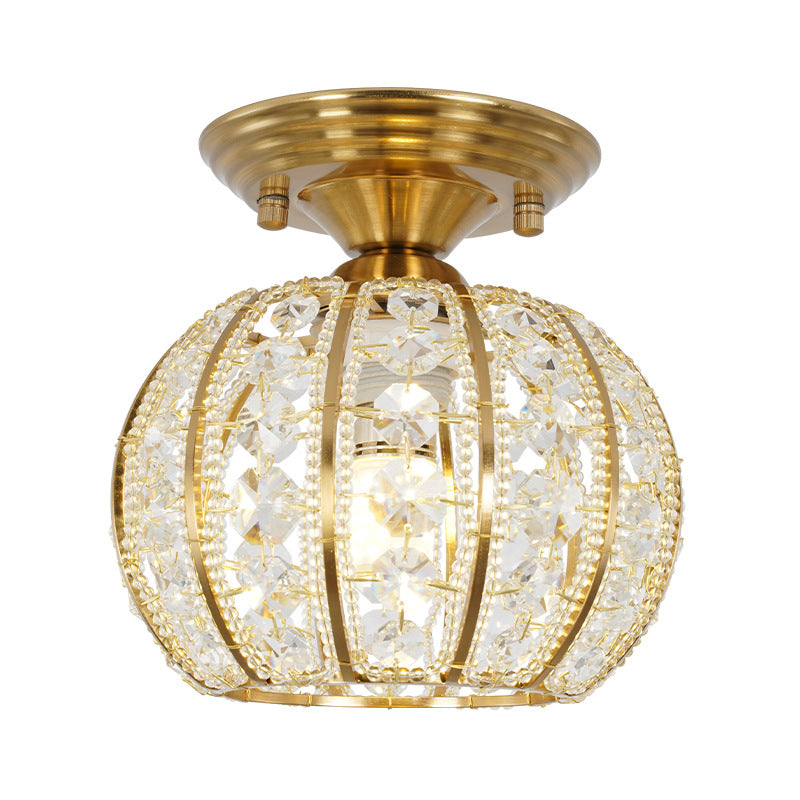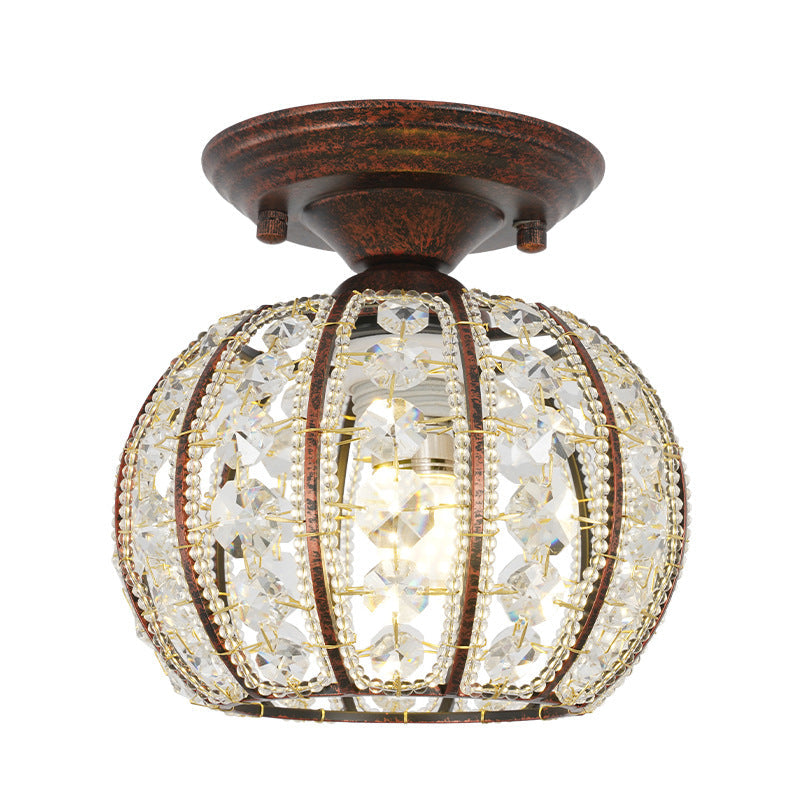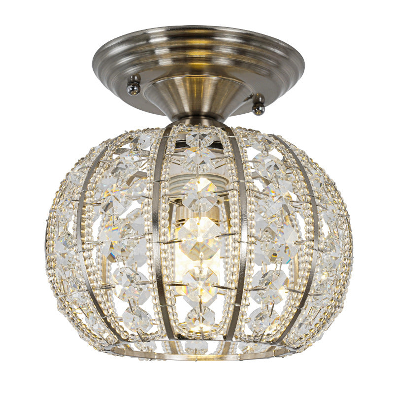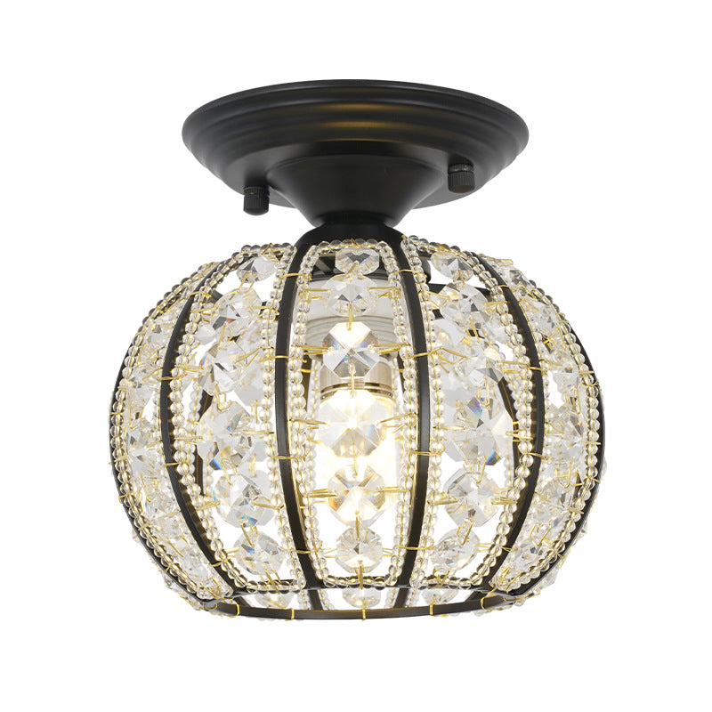 Contemporary Scandinavian Oval Hollow Crushed Flower Disc Base Iron Crystal 1-Light Semi-Flush Mount Ceiling Light For Living Room