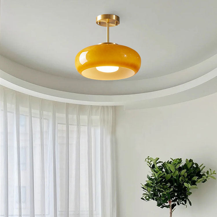 Contemporary Scandinavian Oval Iron Copper Glass 1-Light Pendant Light For Bedroom