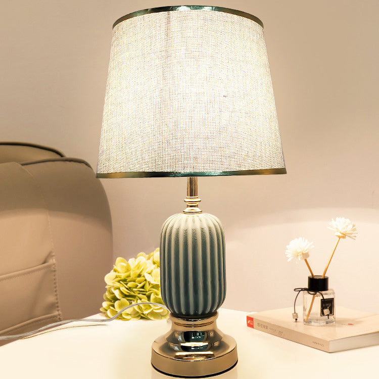 Contemporary Scandinavian Oval Round Table Iron Ceramic Fabric 1-Light Table Lamp For Bedroom