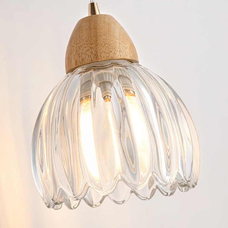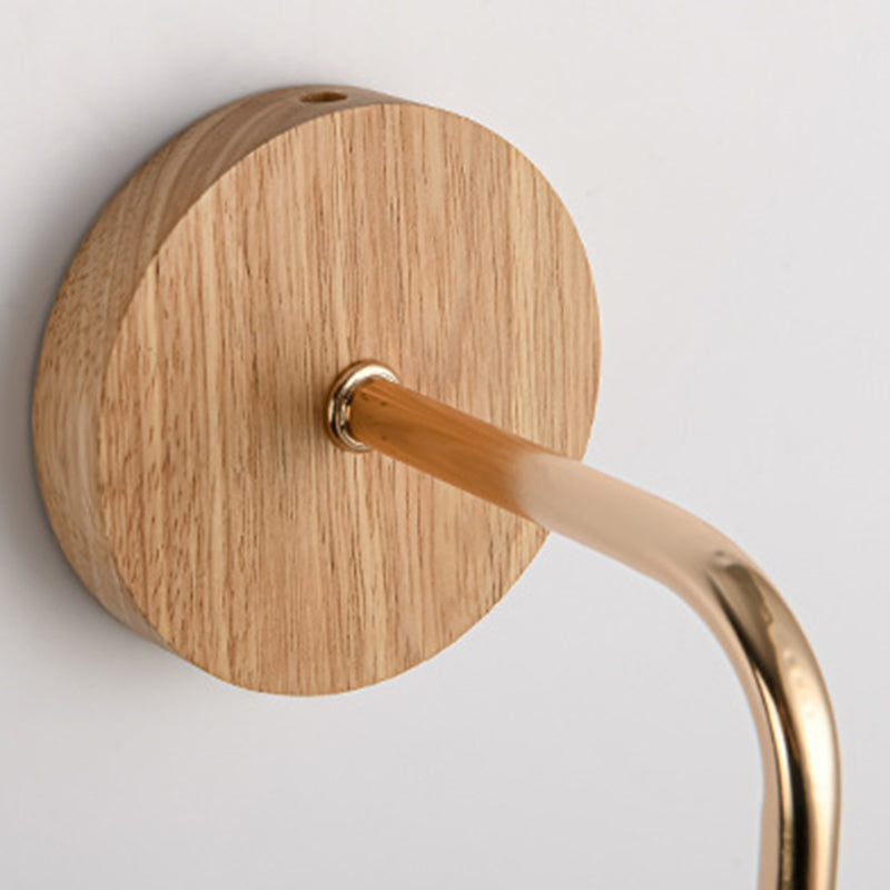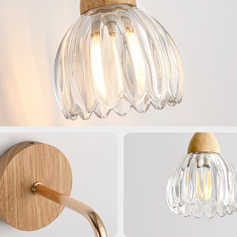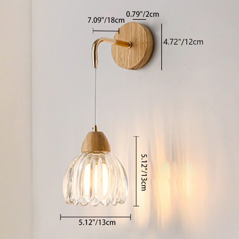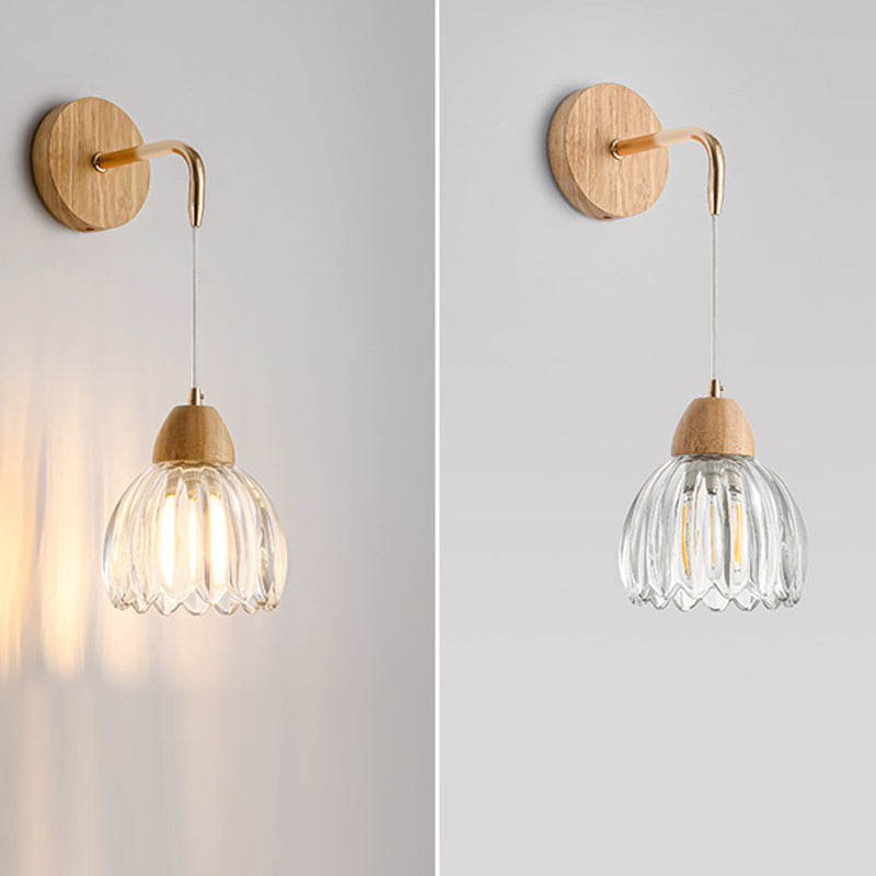 Contemporary Scandinavian Pod Round Curved Glass Wood 1-Light Wall Sconce Lamp For Bedroom