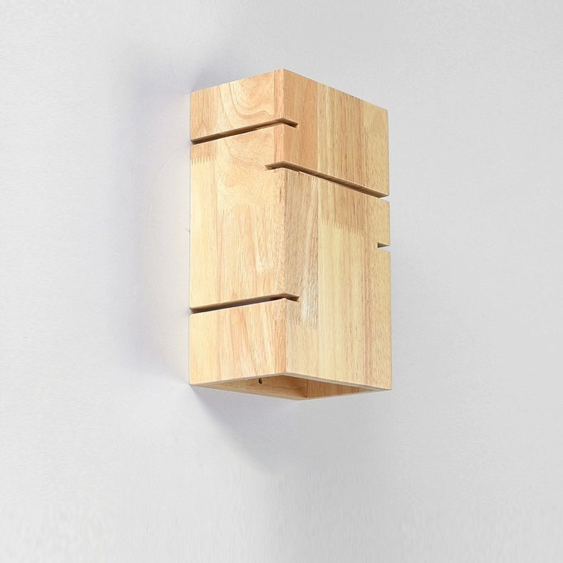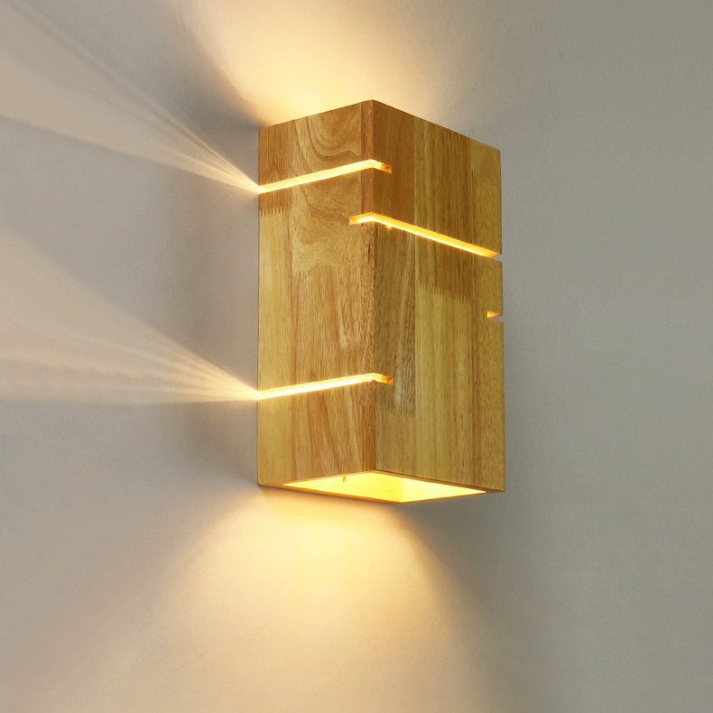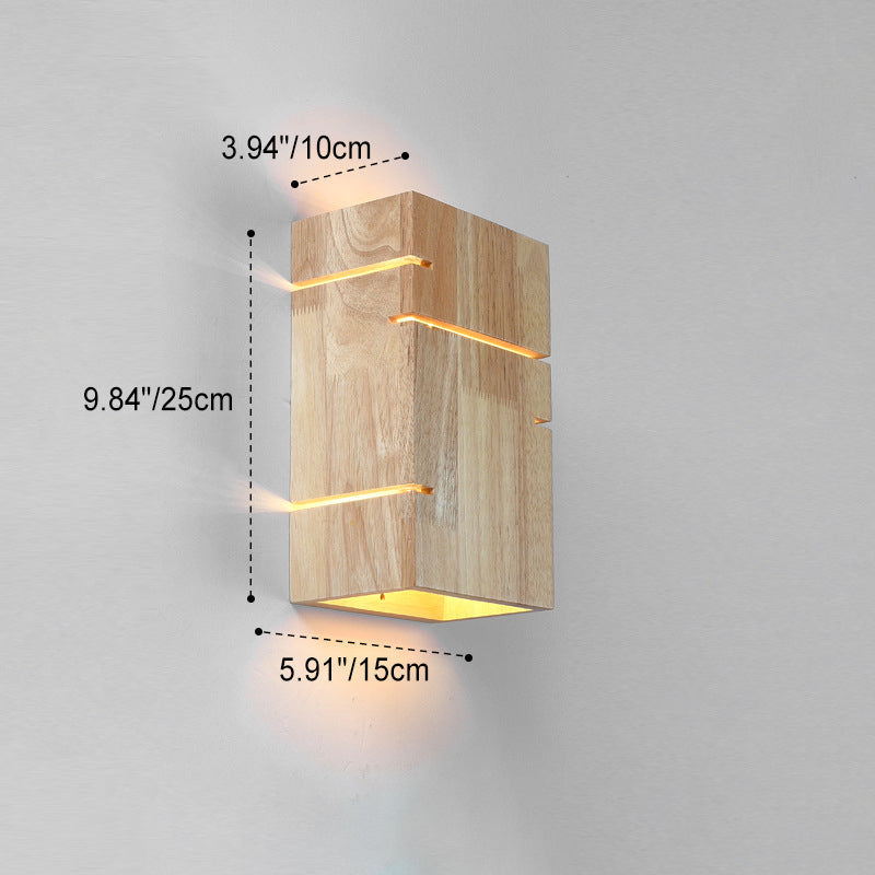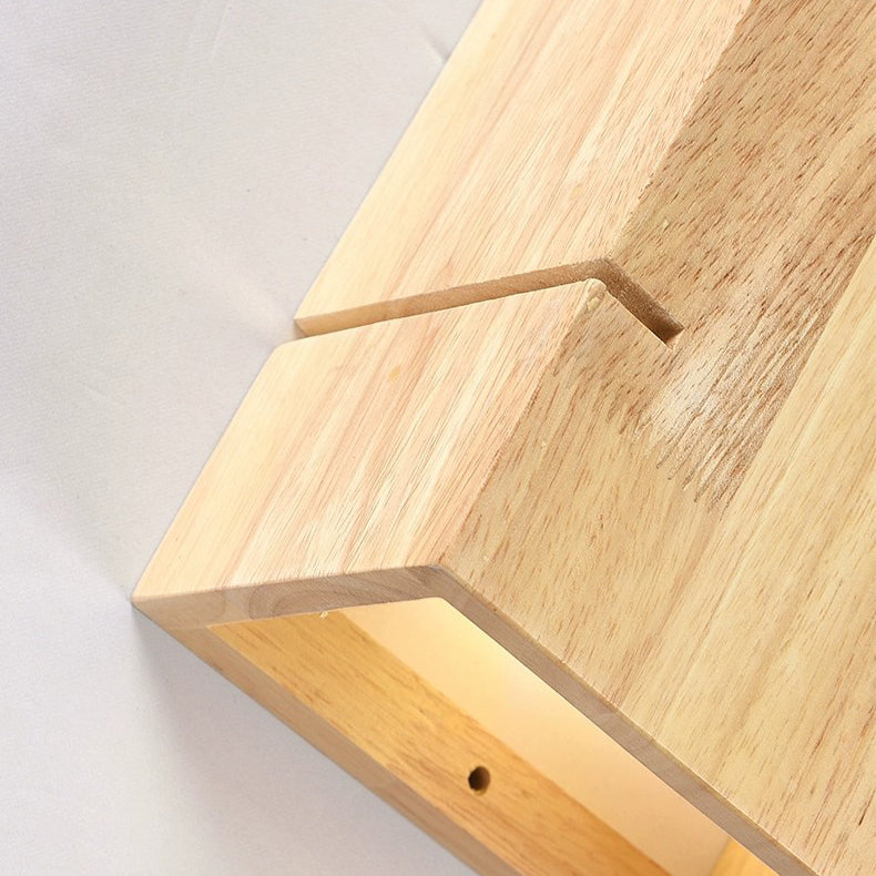 Contemporary Scandinavian Rectangular Rubberwood 2-Light Wall Sconce Lamp For Bedroom