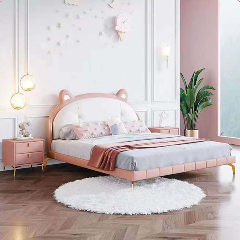 Contemporary Scandinavian Rectangular Solid Wood Microfiber Leather Metal Hardware Nightstand 2-Drawer For Bedroom