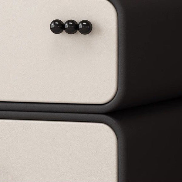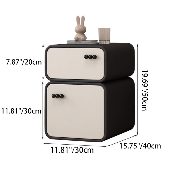 Contemporary Scandinavian Rectangular Solid Wood Microfiber Leather Veneered Nightstand 2-Drawer For Bedroom