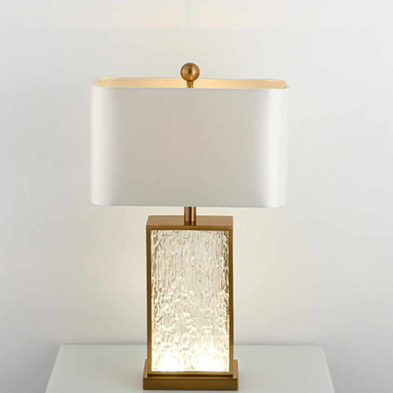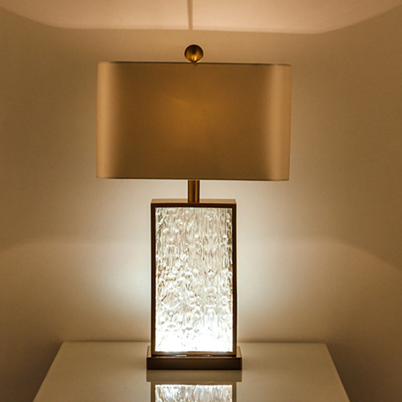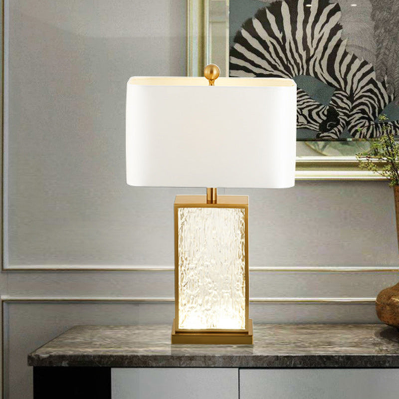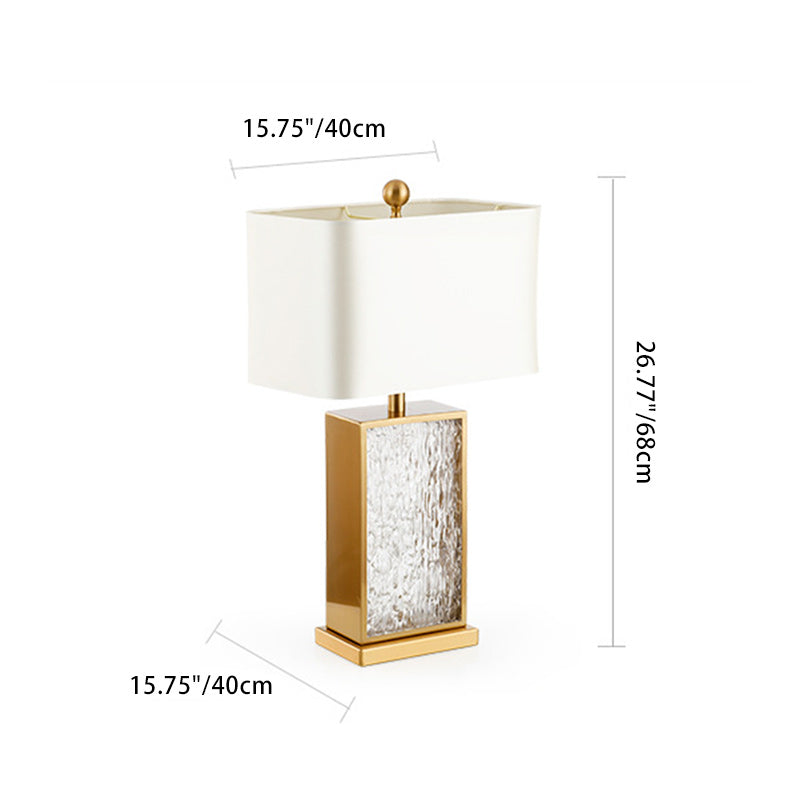 Contemporary Scandinavian Rectangular Square Fabric Marble Hardware 1-Light Table Lamp For Living Room