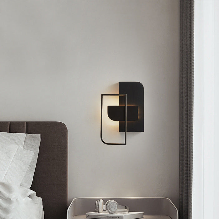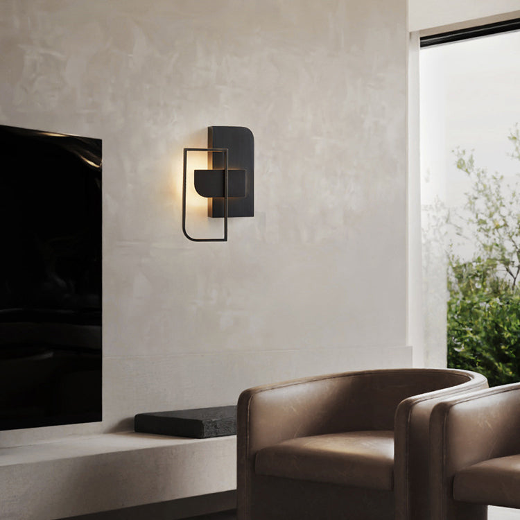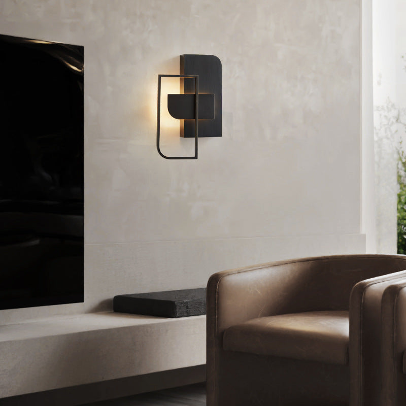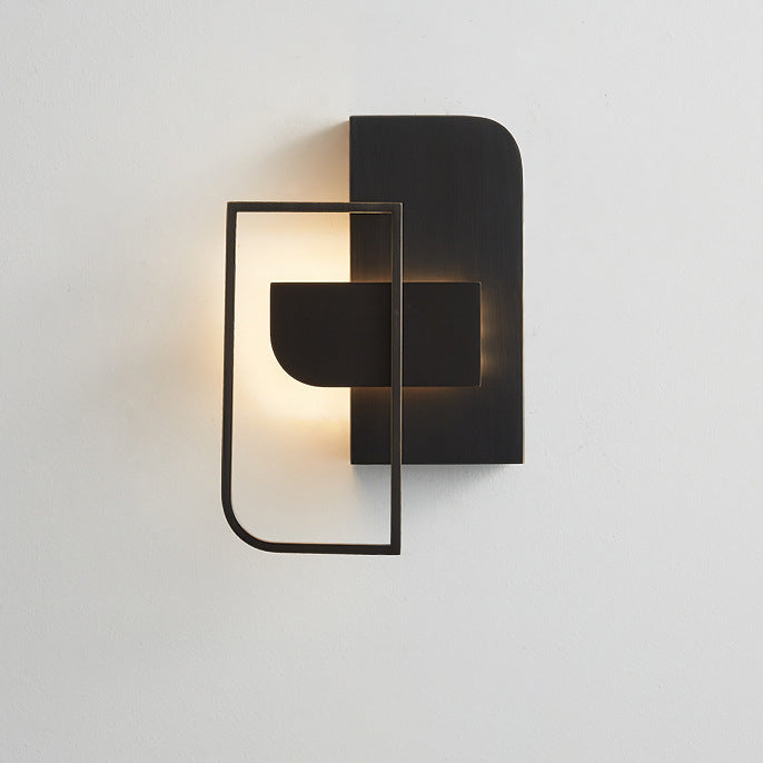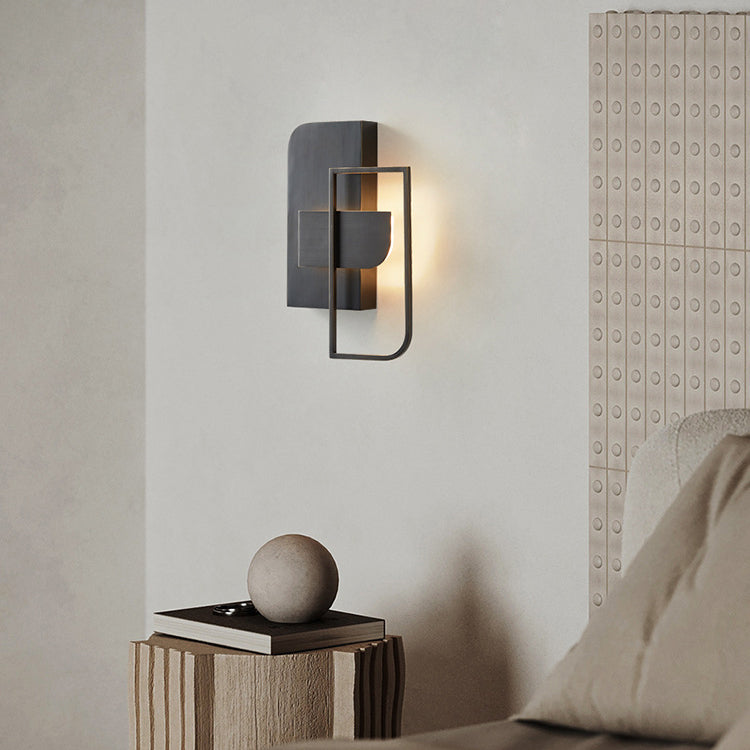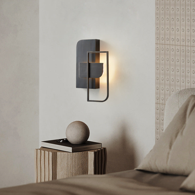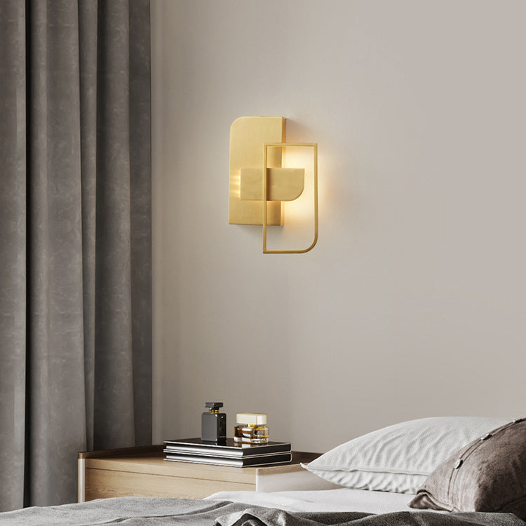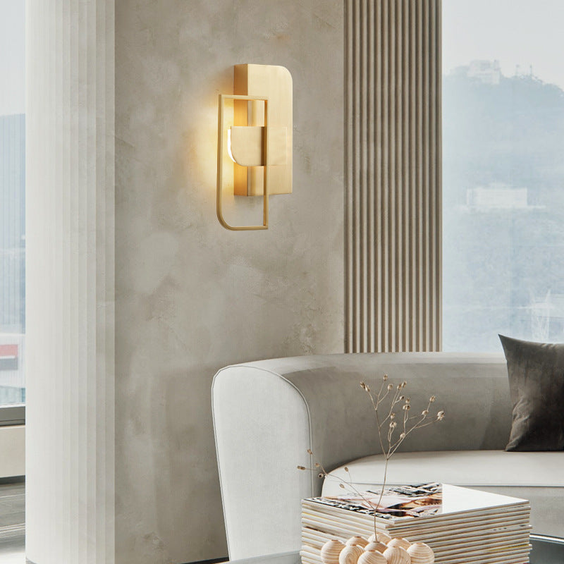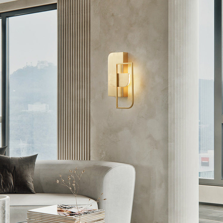 Contemporary Scandinavian Rectangular Stitching Copper Hardware LED Wall Sconce Lamp For Living Room