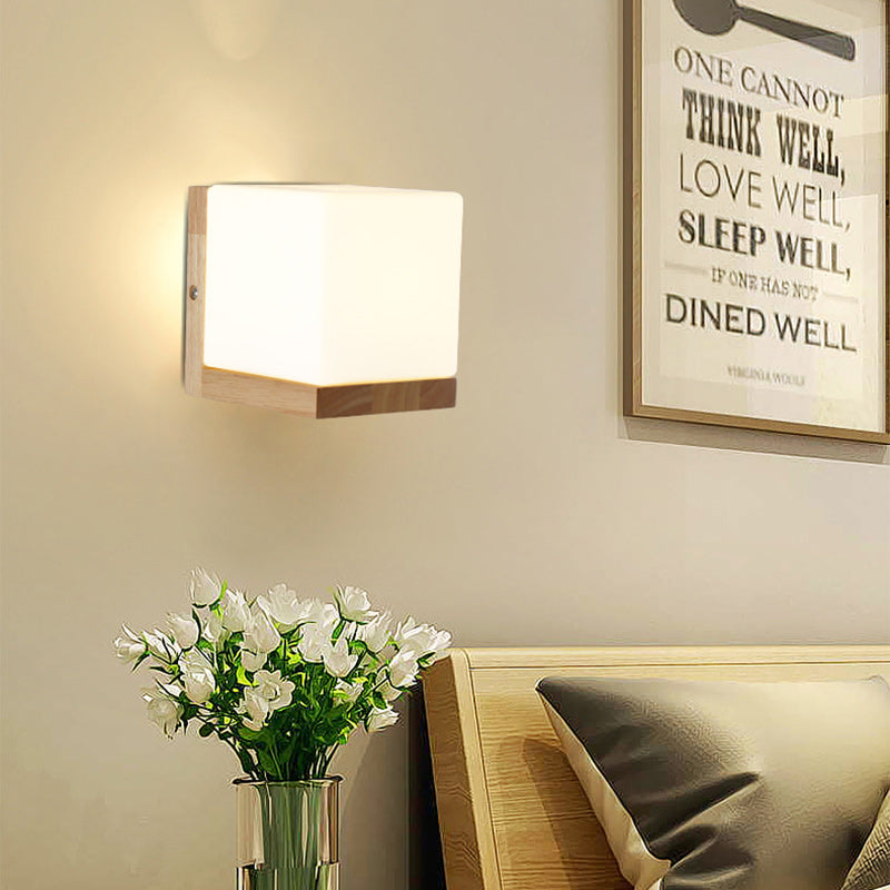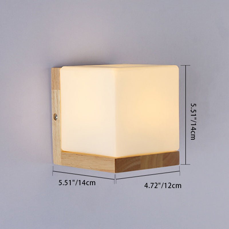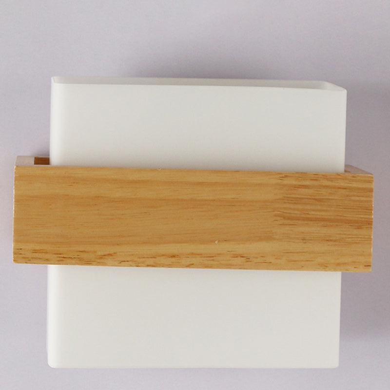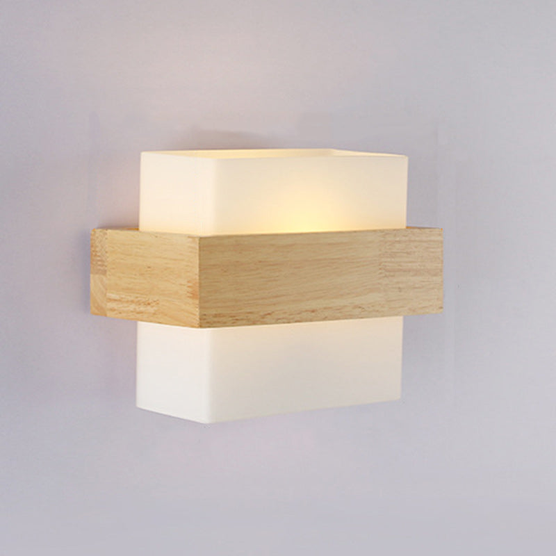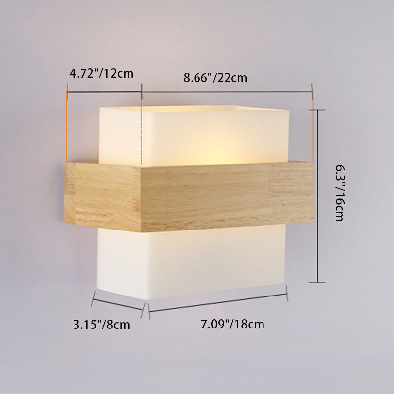 Contemporary Scandinavian Rectangular Wood Glass 1-Light Wall Sconce Lamp For Living Room