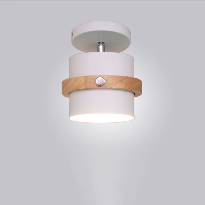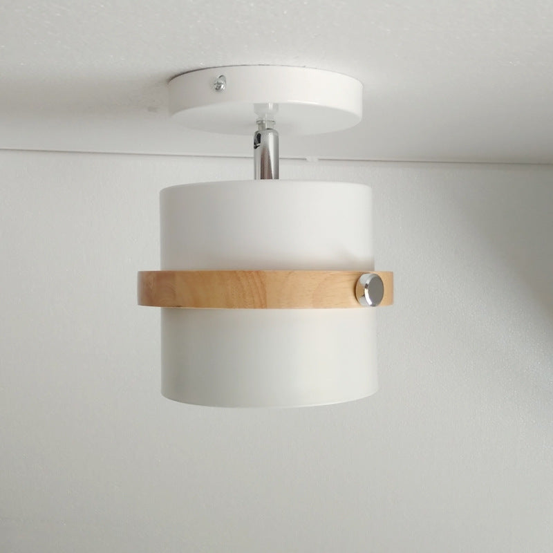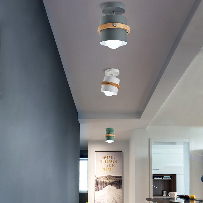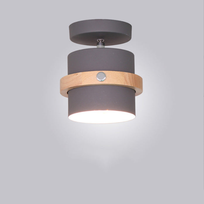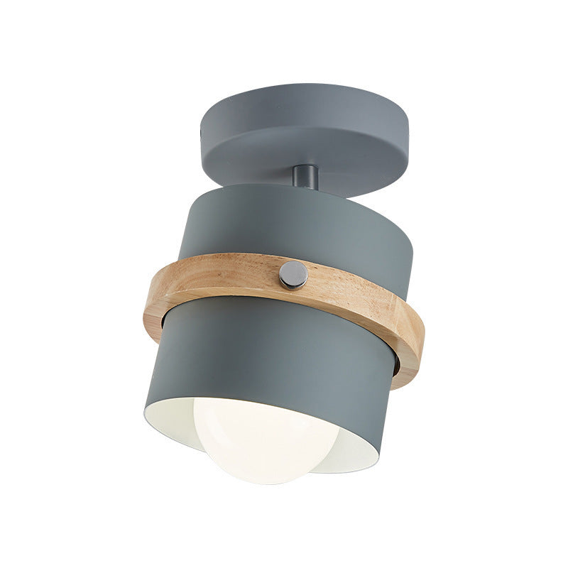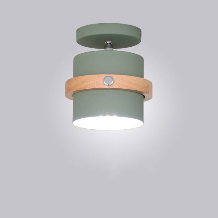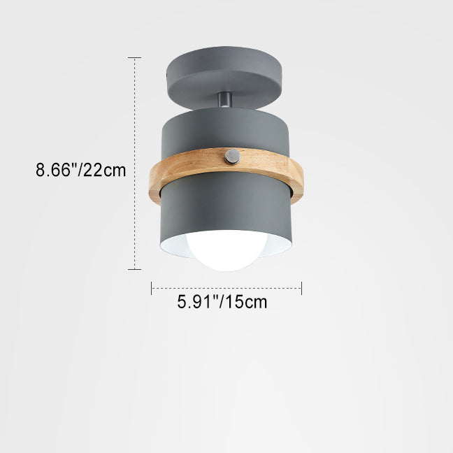 Contemporary Scandinavian Rotatable Cylinder Round Wood Iron 1-Light Semi-Flush Mount Ceiling Light For Living Room
