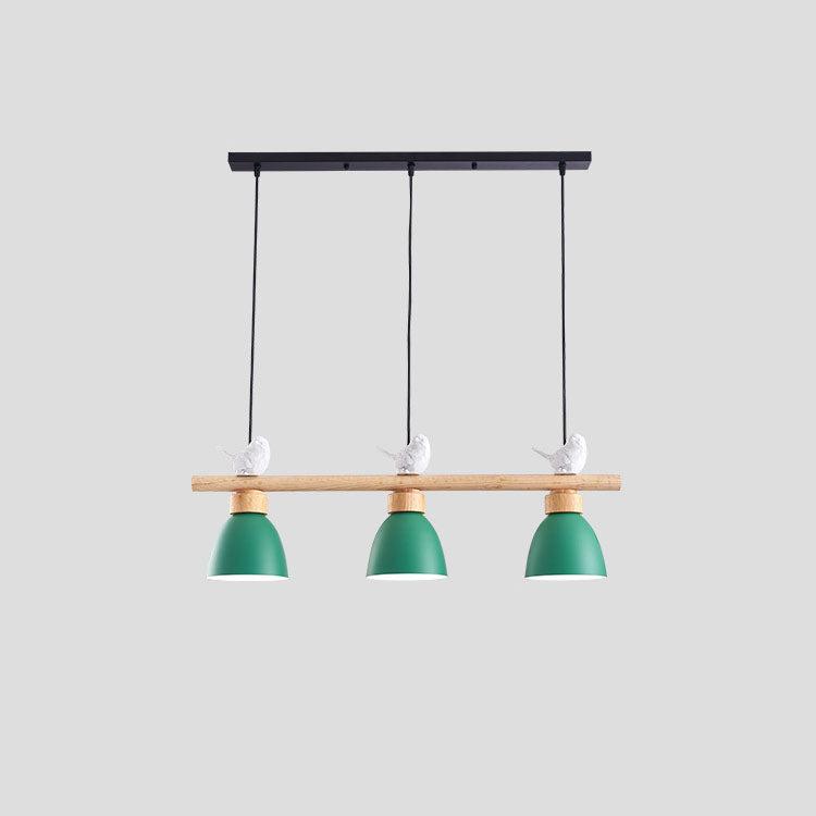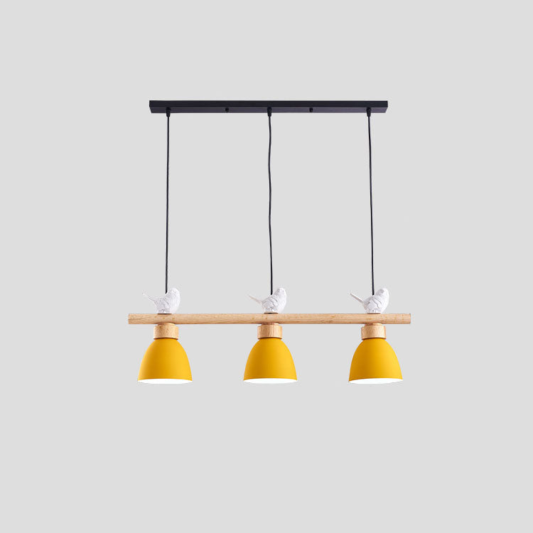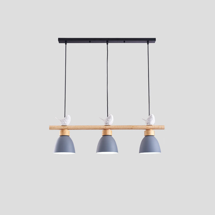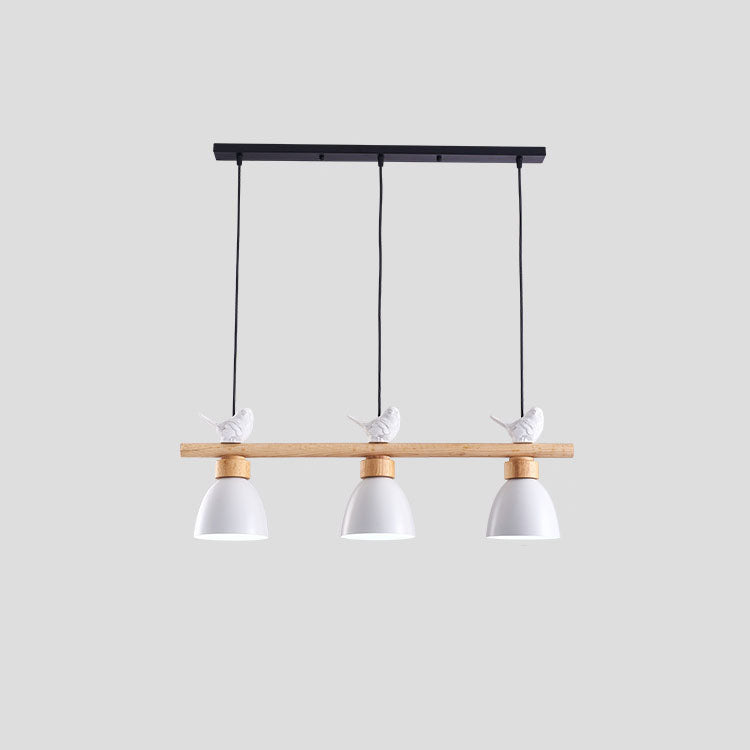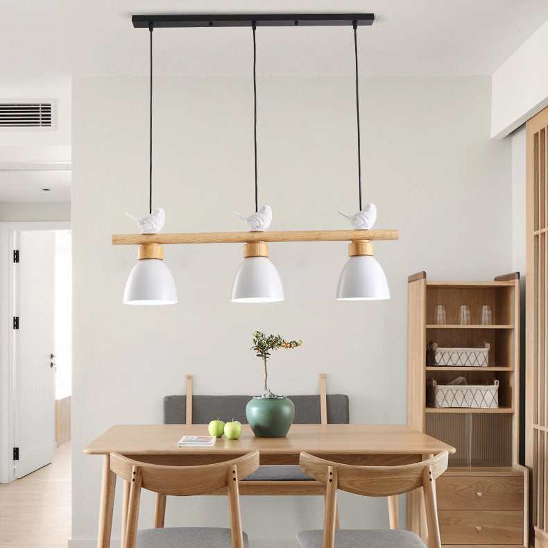 Contemporary Scandinavian Round Bird Iron Wood Resin 3-Light Island Light Chandelier For Dining Room