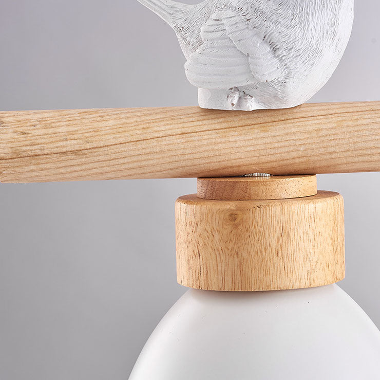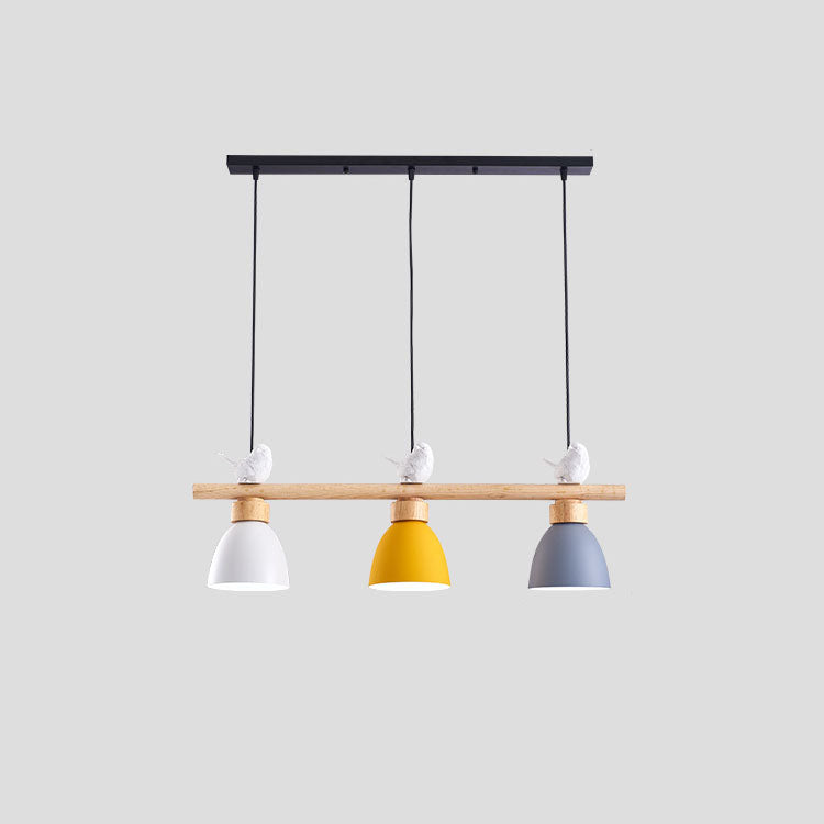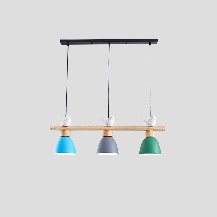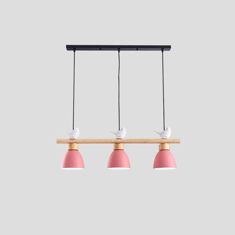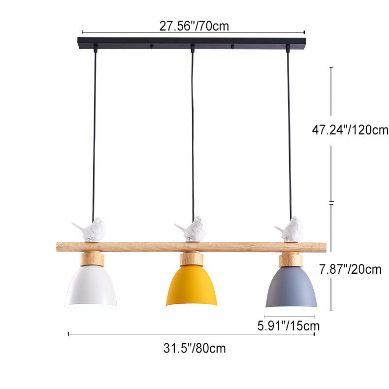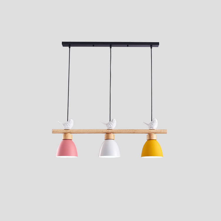 Contemporary Scandinavian Round Bird Iron Wood Resin 3-Light Island Light Chandelier For Dining Room