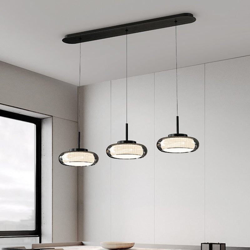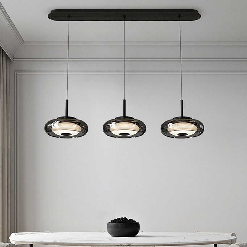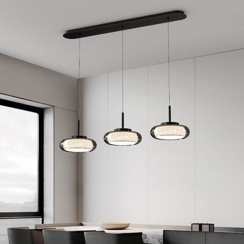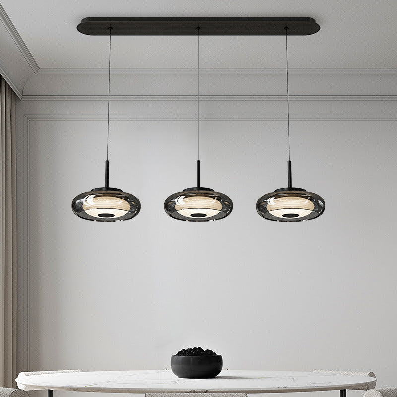 Contemporary Scandinavian Round Bowl Shape Iron Glass Lampshade LED Chandeliers For Dining Room