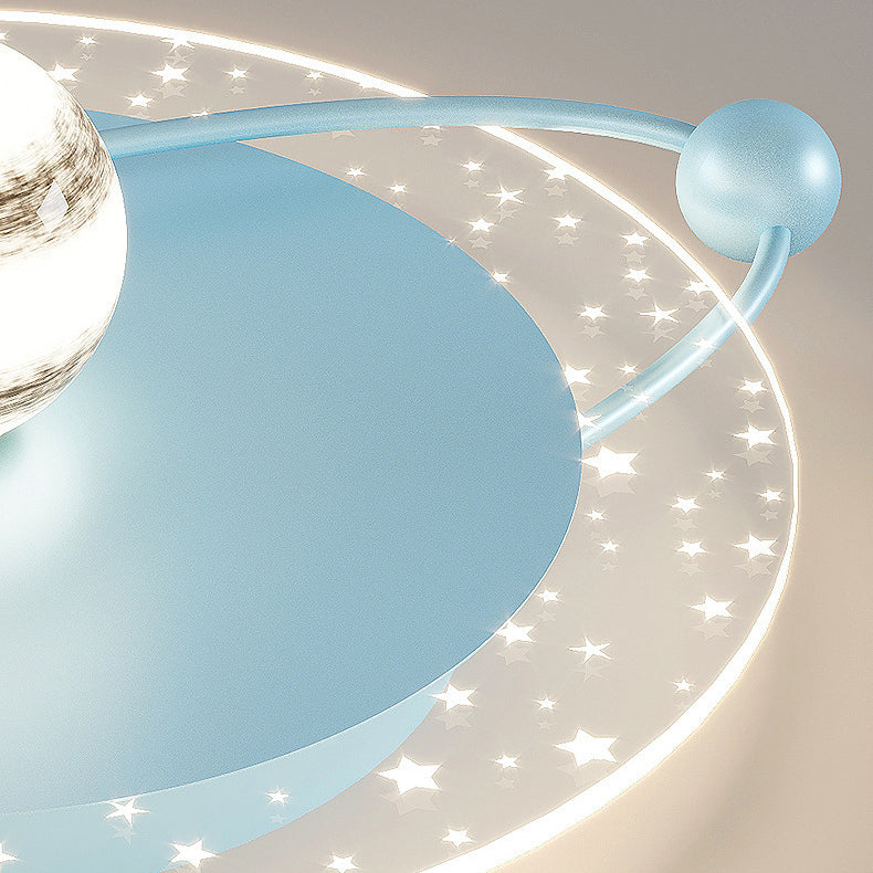 Contemporary Scandinavian Round Cartoon Astronaut Planet Iron Acrylic LED Flush Mount Ceiling Light For Bedroom